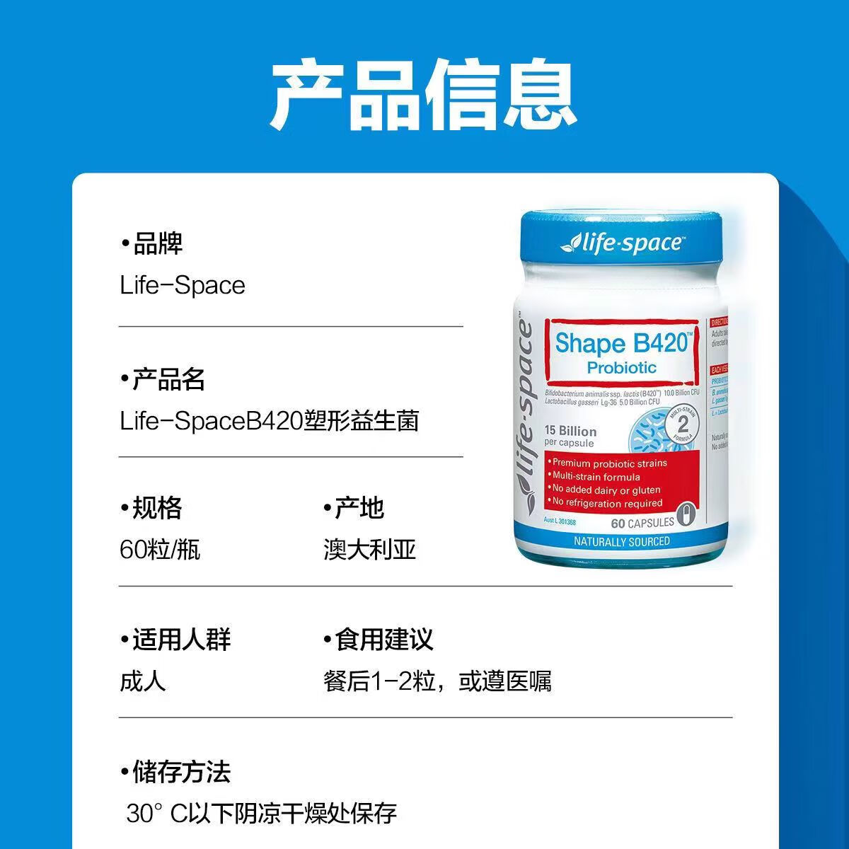 【保税仓】Life Space B420塑身益生菌胶囊 60粒/瓶