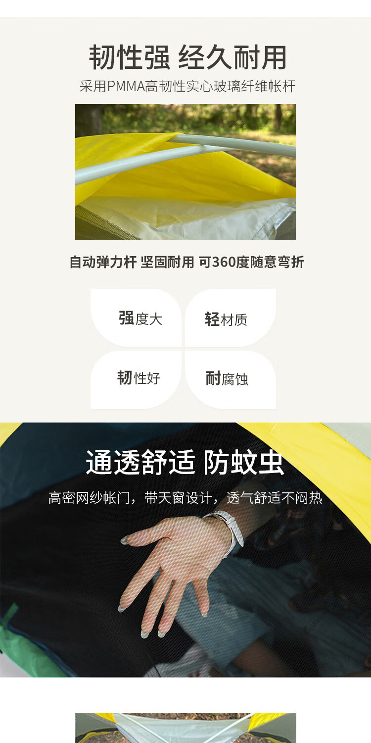 徽羚羊 云雾全自动露营防雨4-5人帐篷 流沙金2.2*2.2m HLY-ZP-23001