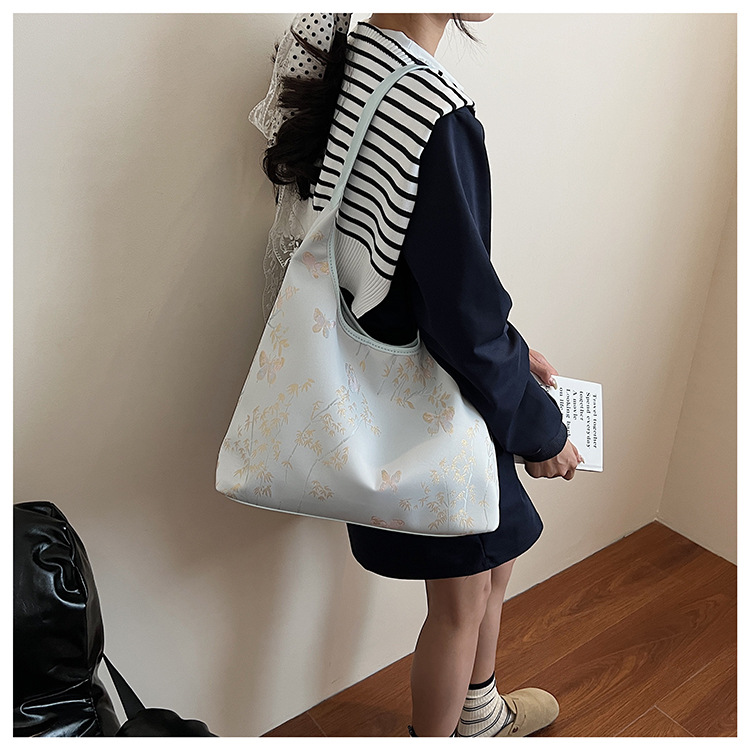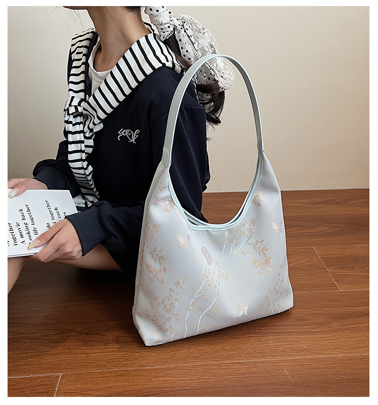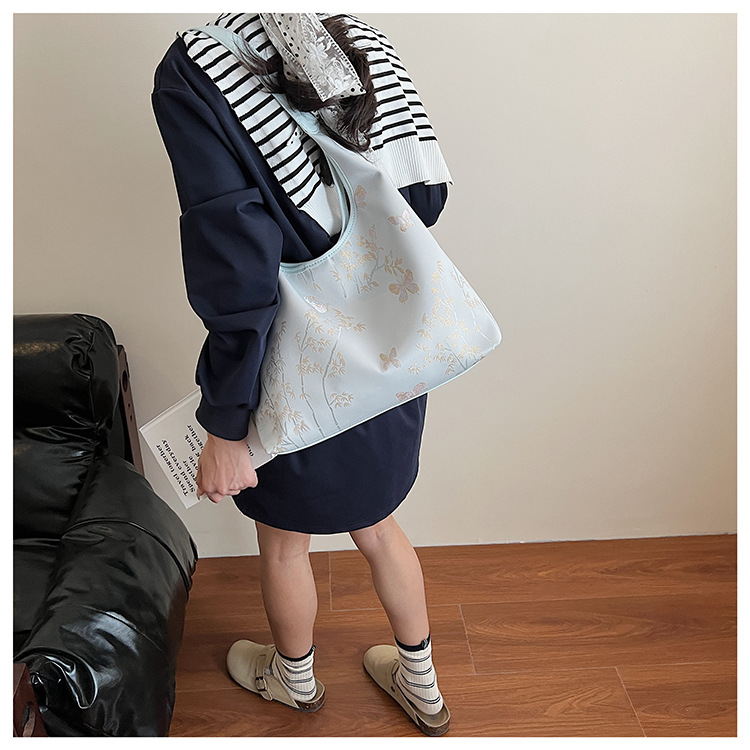【敦煌新中式单肩包】敦煌新中式国风托特包女2025 新款夏时尚刺绣帆布单肩包休闲通勤腋下包