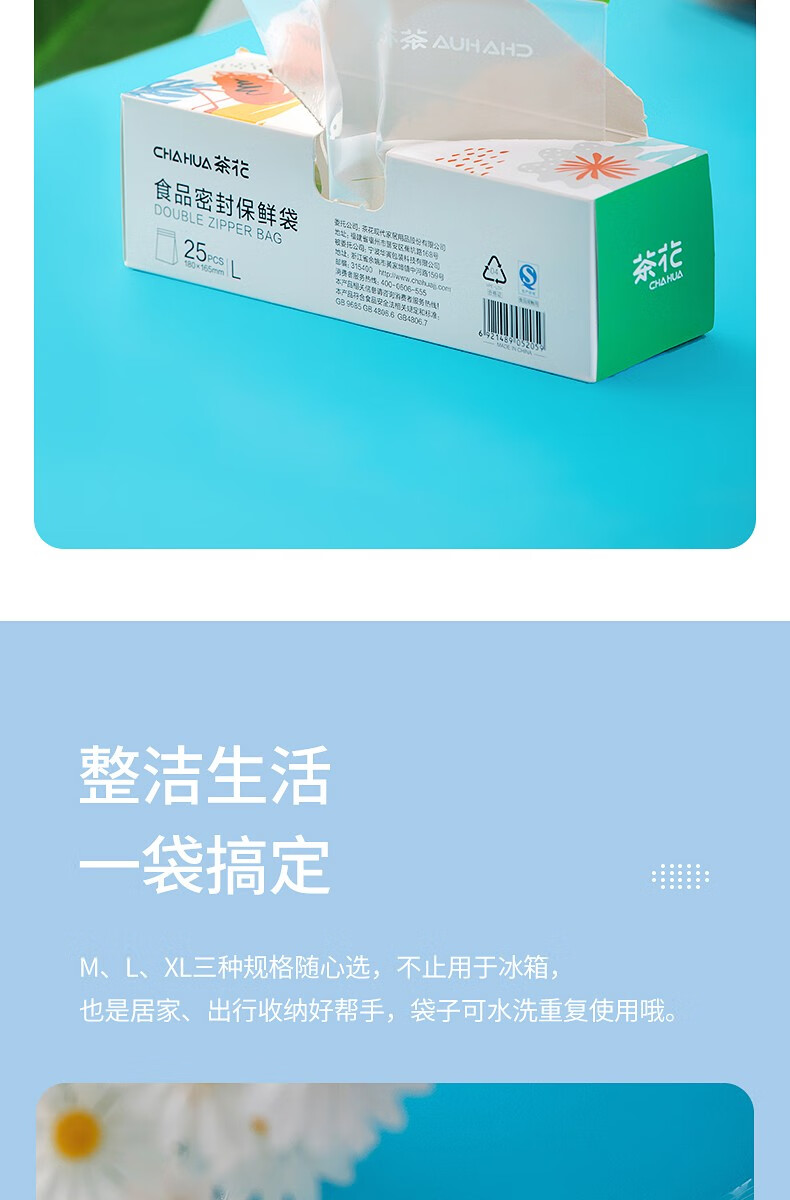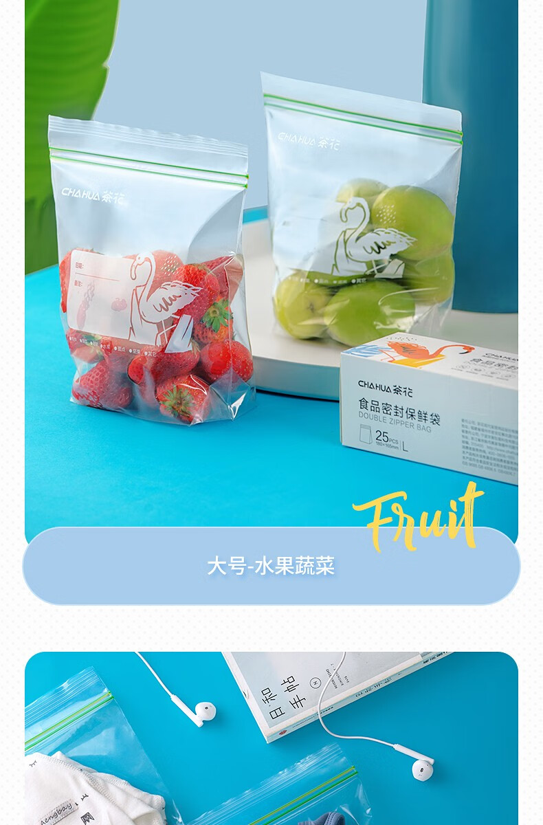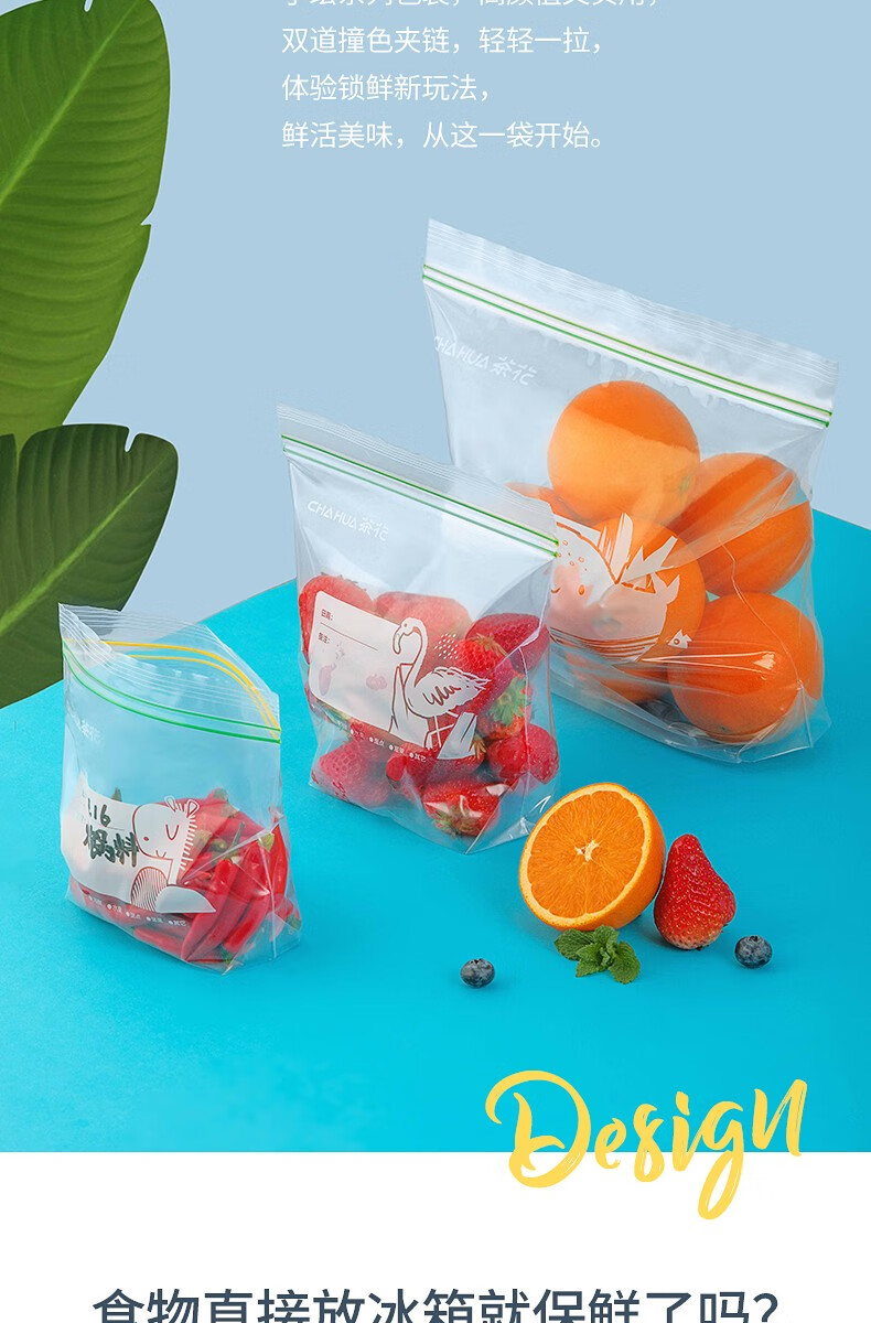 茶花 990089生物系列食物密封保鲜袋中号立体款30只*2