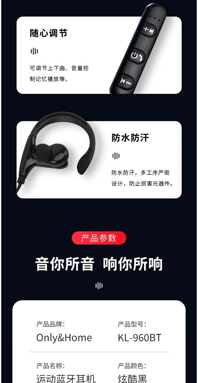 only&home 蓝牙耳机 入耳式运动耳机 KL-910BT
