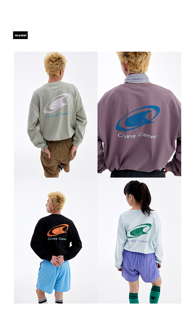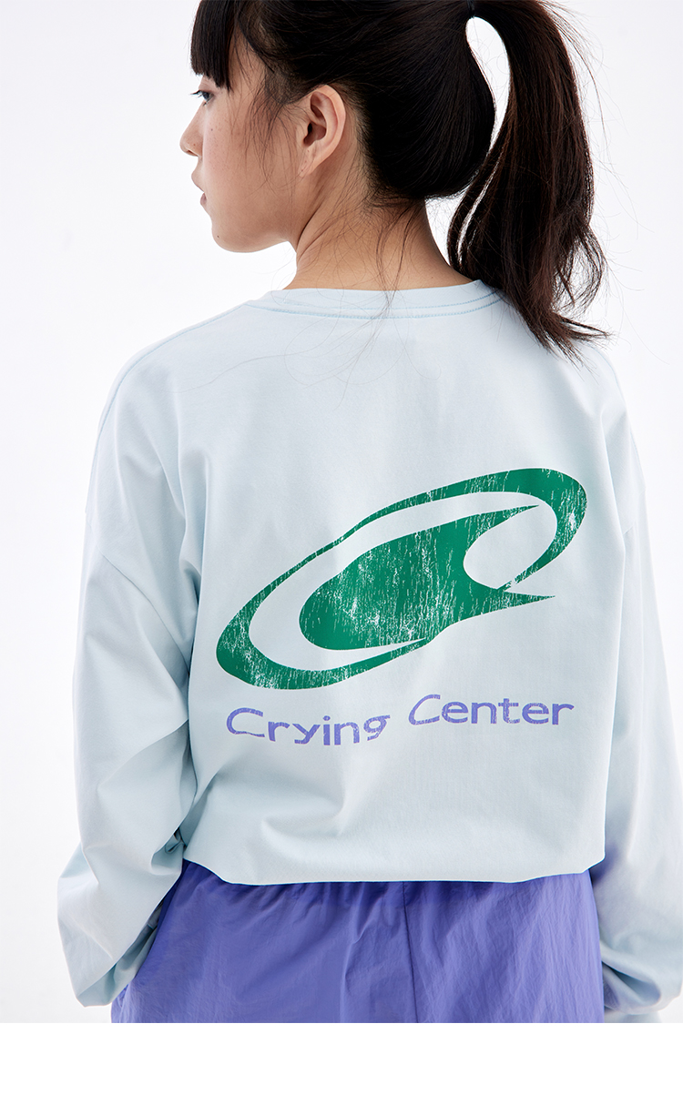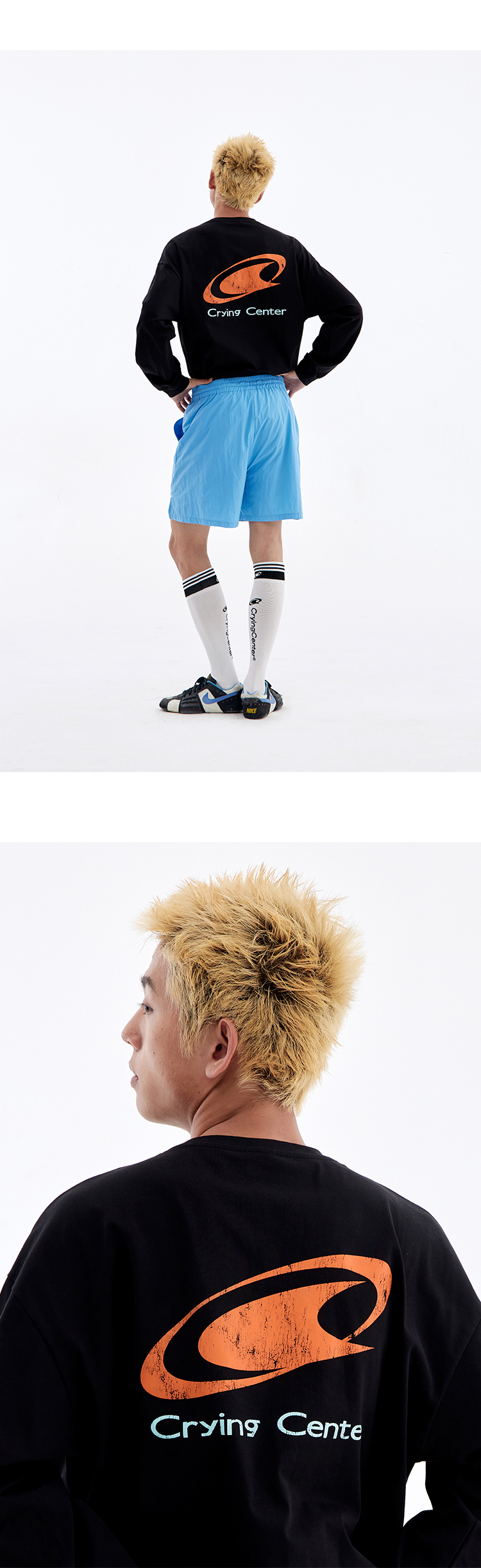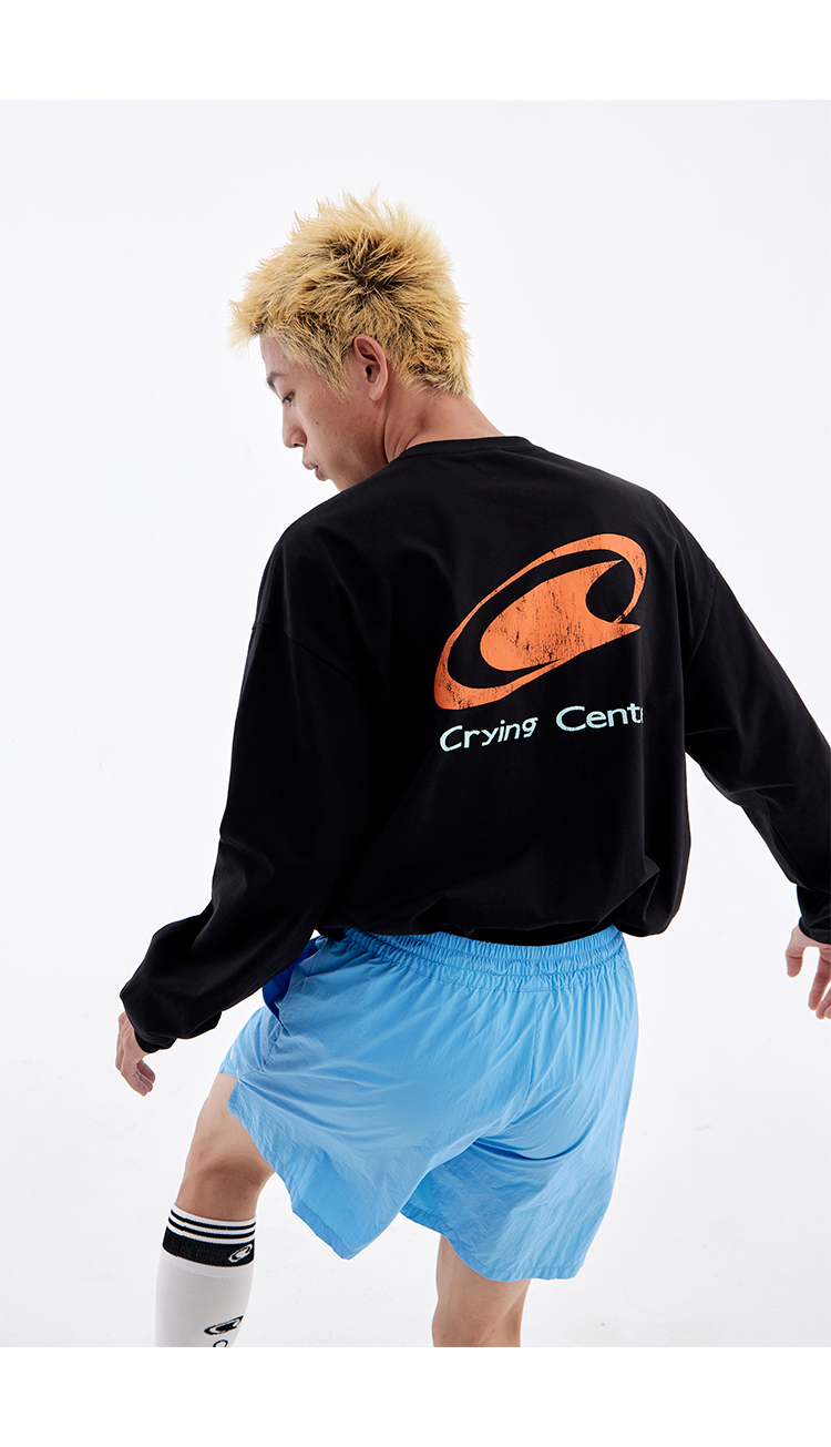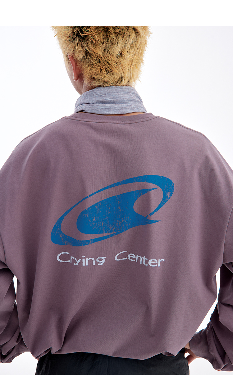 CryingCenter 复古裂纹撞色后背长袖T恤 哭喊中心