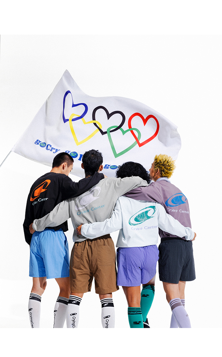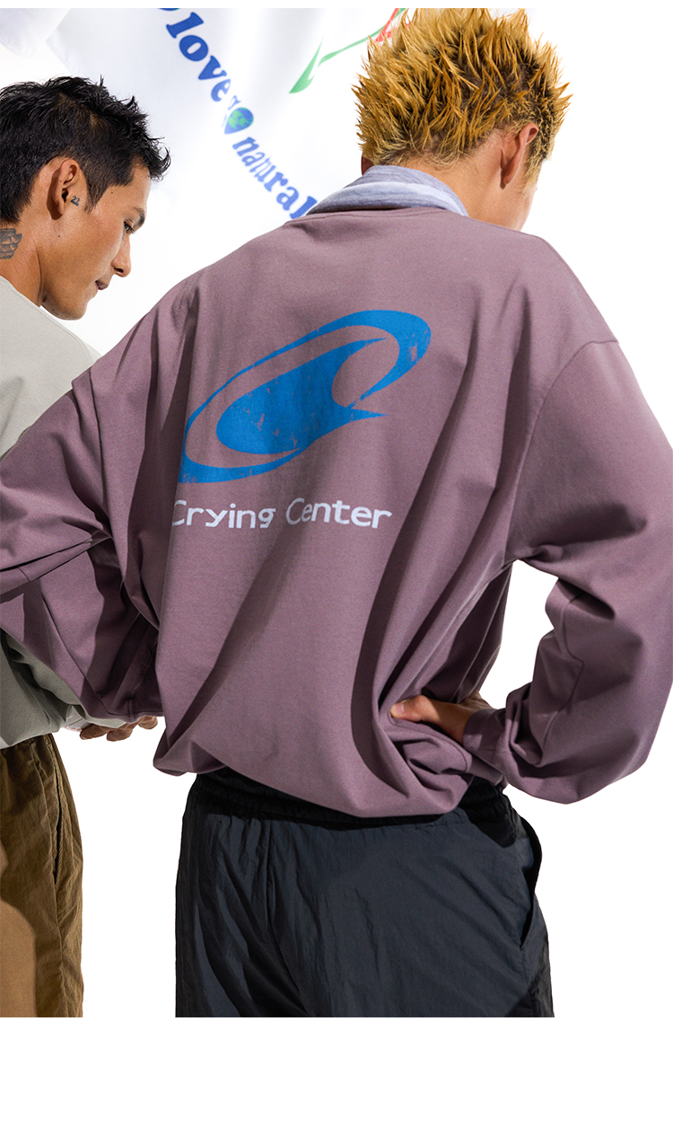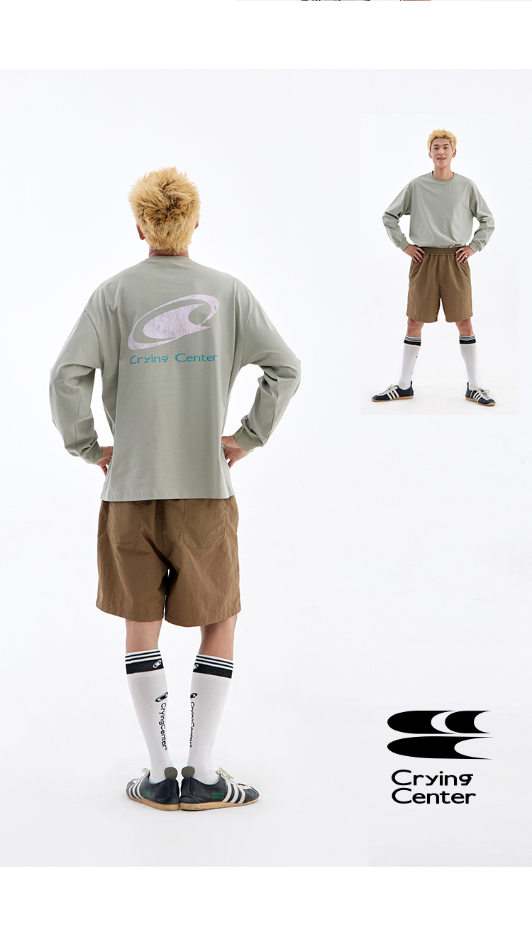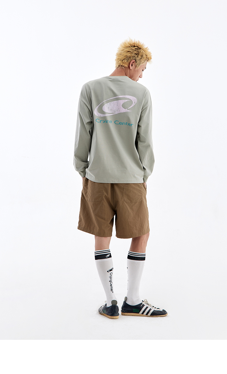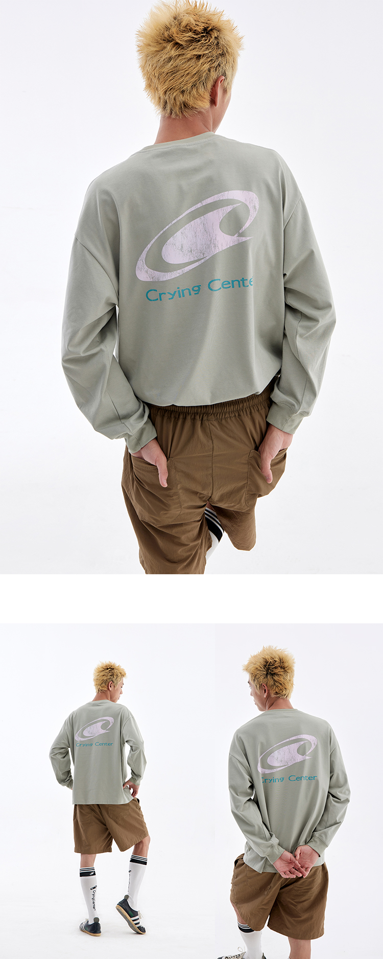 CryingCenter 复古裂纹撞色后背长袖T恤 哭喊中心
