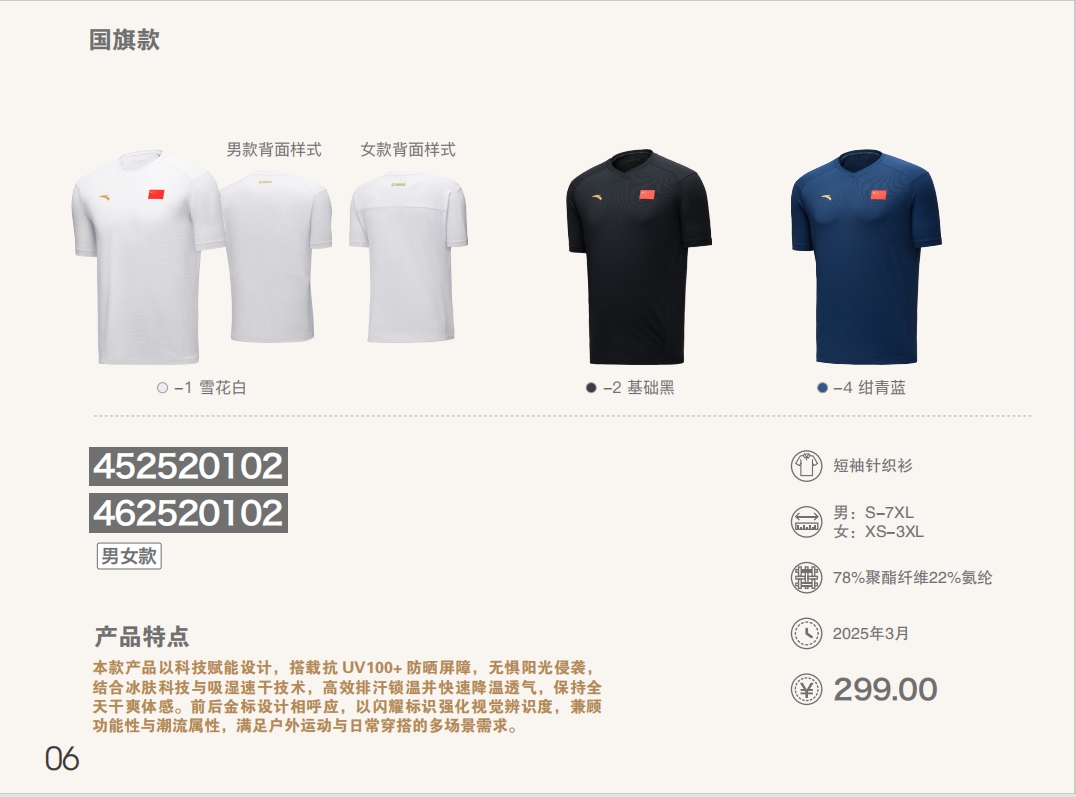 安踏2025夏款赞助国家队圆领训练短袖T恤男女452520102