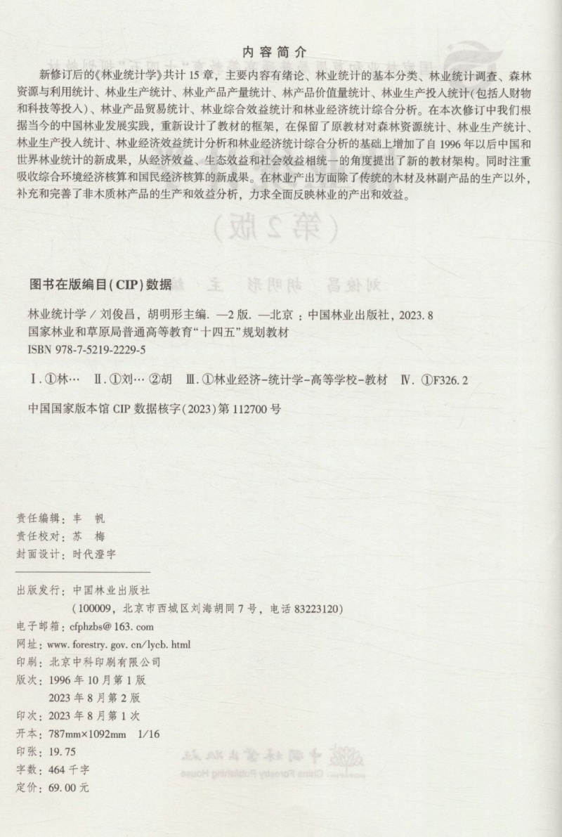 林业统计学(第2版国家林业和草原局普通高等教育十四五规划教材) &2229