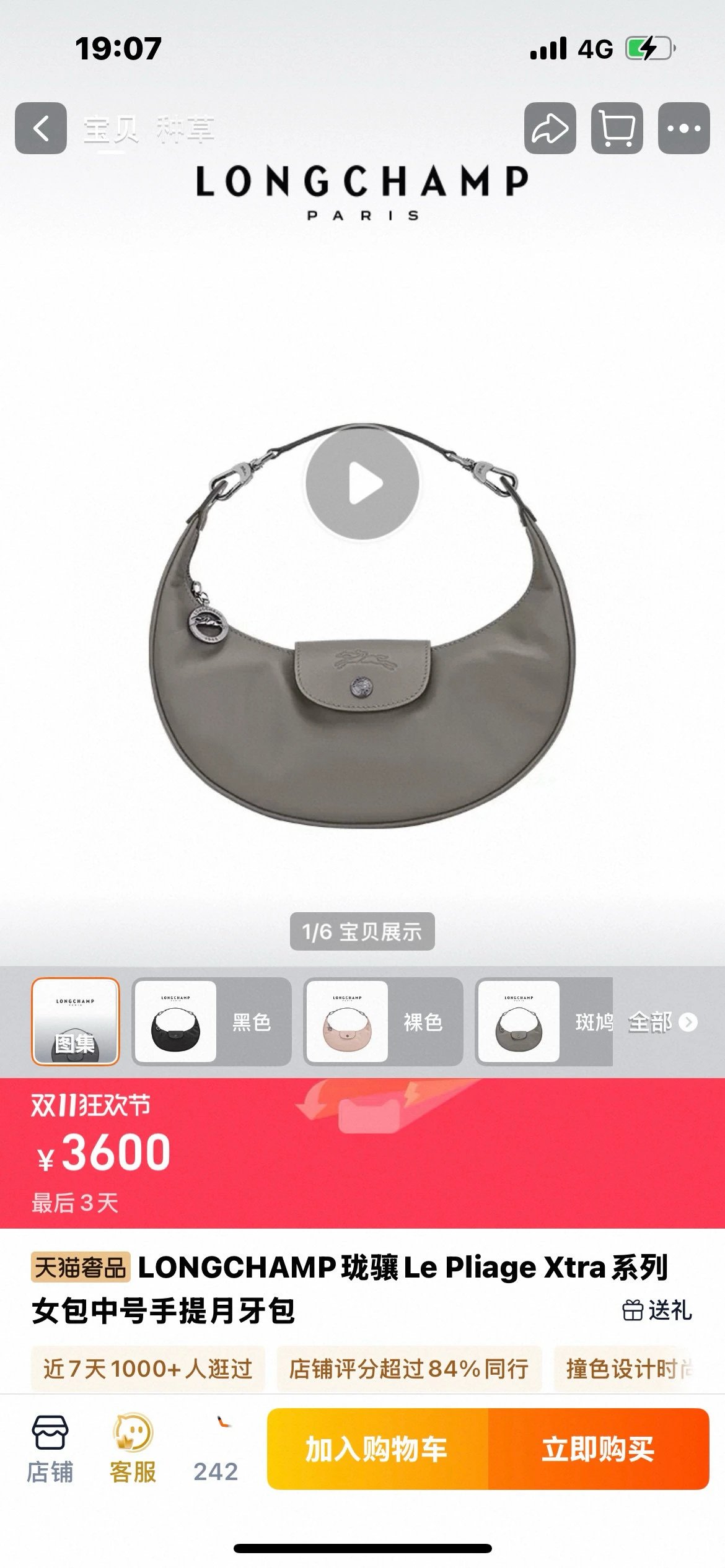 LONGCHA珑骧Le Pliage Xtra系列月牙包,