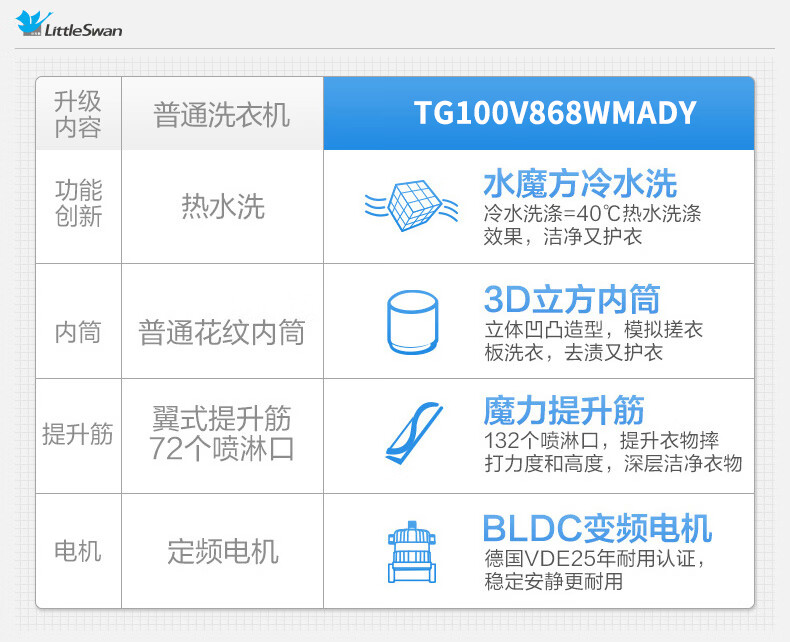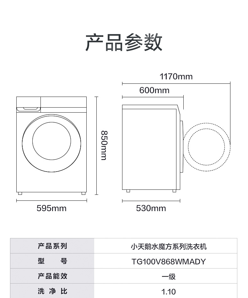 小天鹅(LittleSwan)10公斤滚筒洗衣全自动 水魔方洗衣冷水洗防缠绕一级能效 TG100V868WMADY