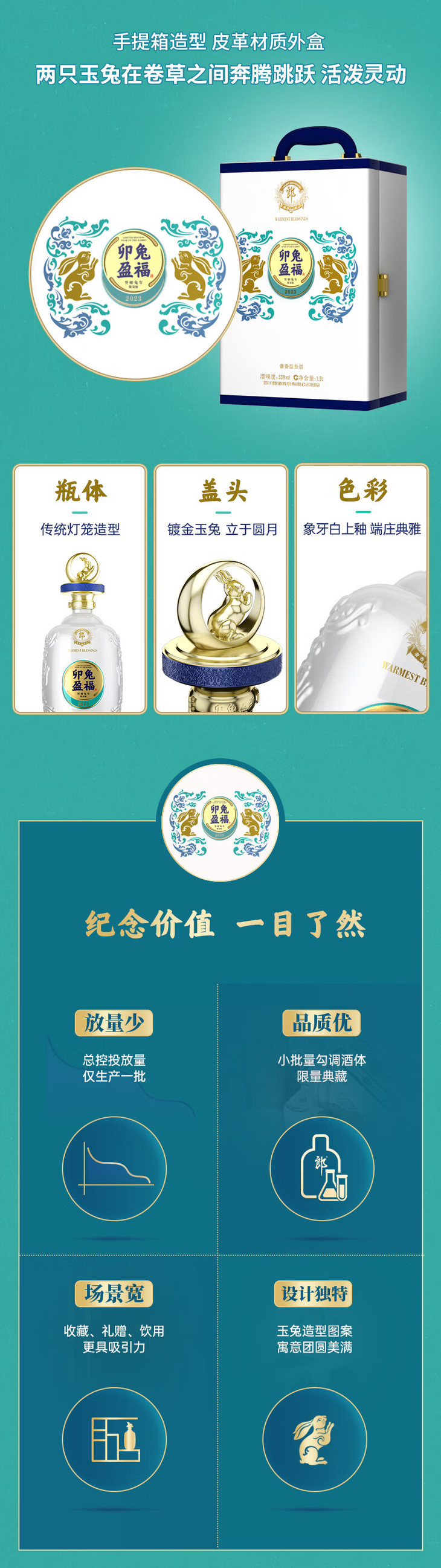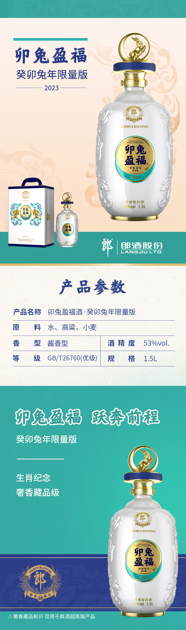【超值秒杀】郎酒 卯兔盈福 癸卯兔年限量版 53度酱香型白酒 1.5L