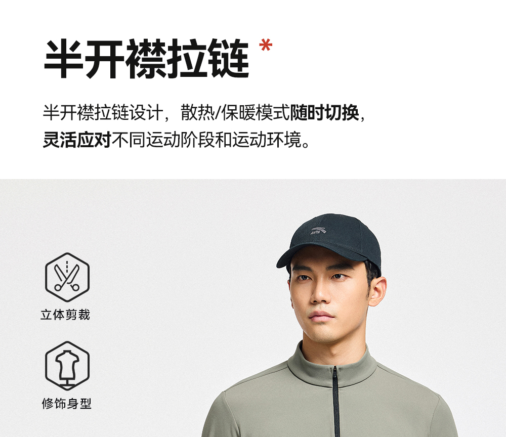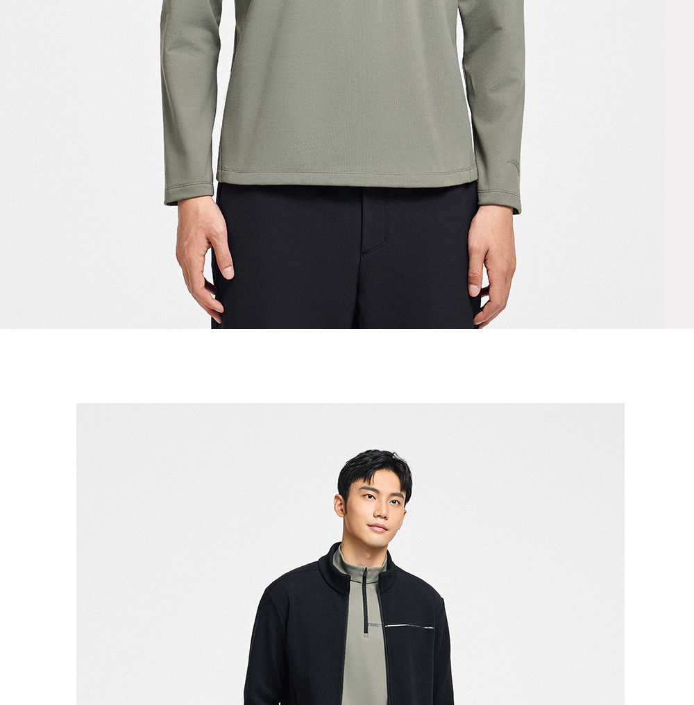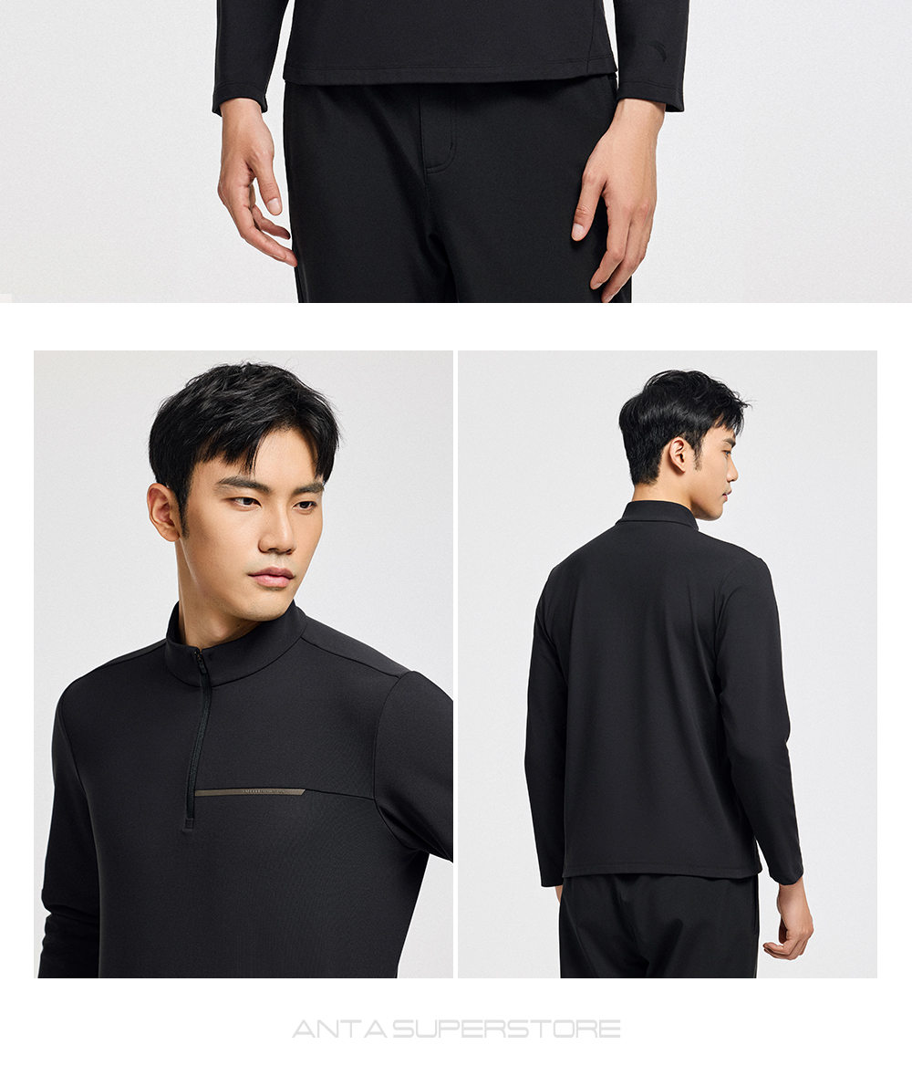 超级安踏甲壳盾抗菌长T男秋冬加绒半拉链卫衣通勤内搭152547408U