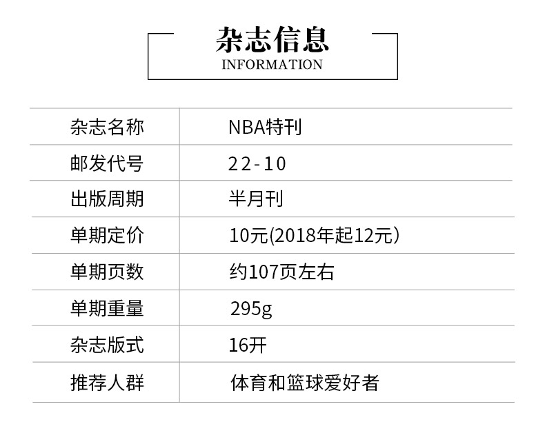 《NBA特刊杂志》1年24期热爱运动 精心策划 趣味焦点 篮球刊物 NBA赛程报道 体育运动期刊订阅书籍