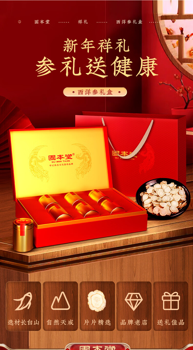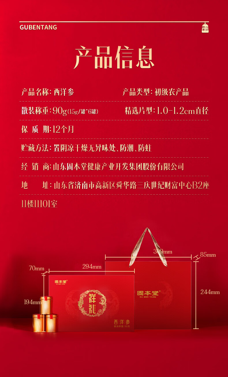 固本堂西洋参礼盒(1.0cm-1.2cm)90g