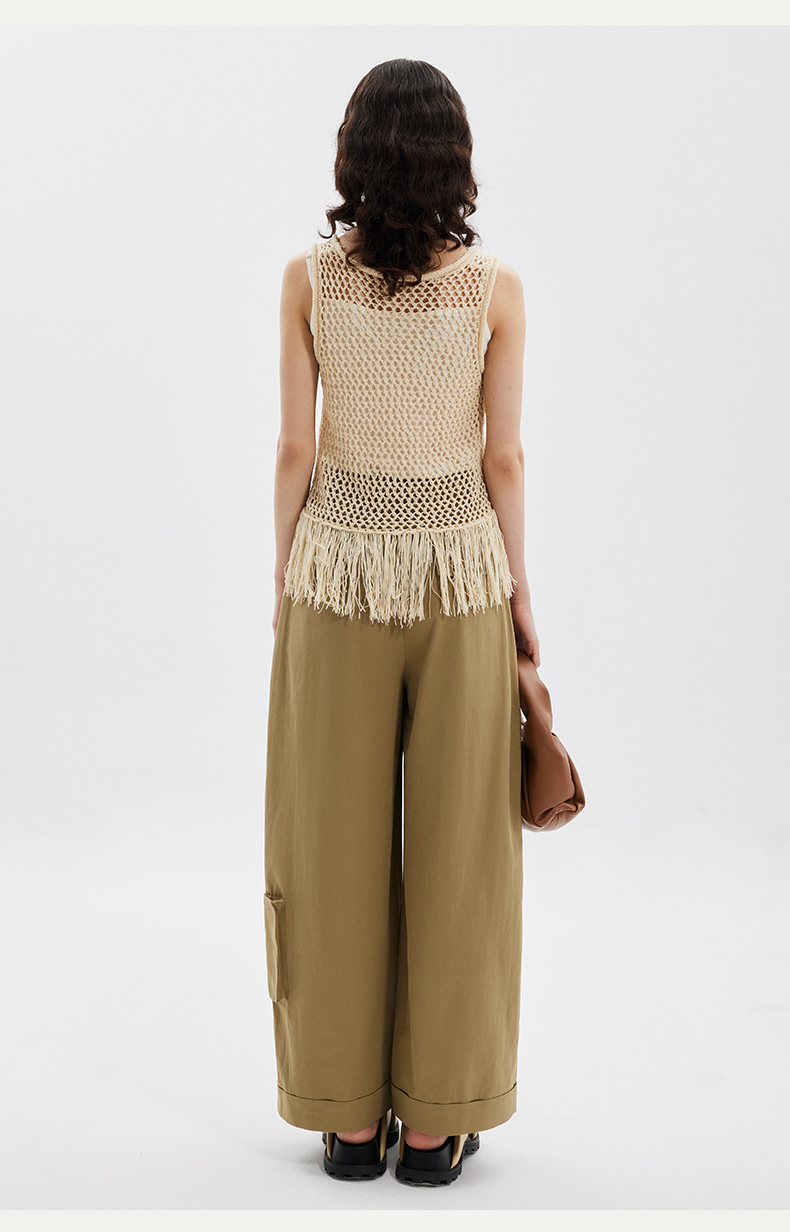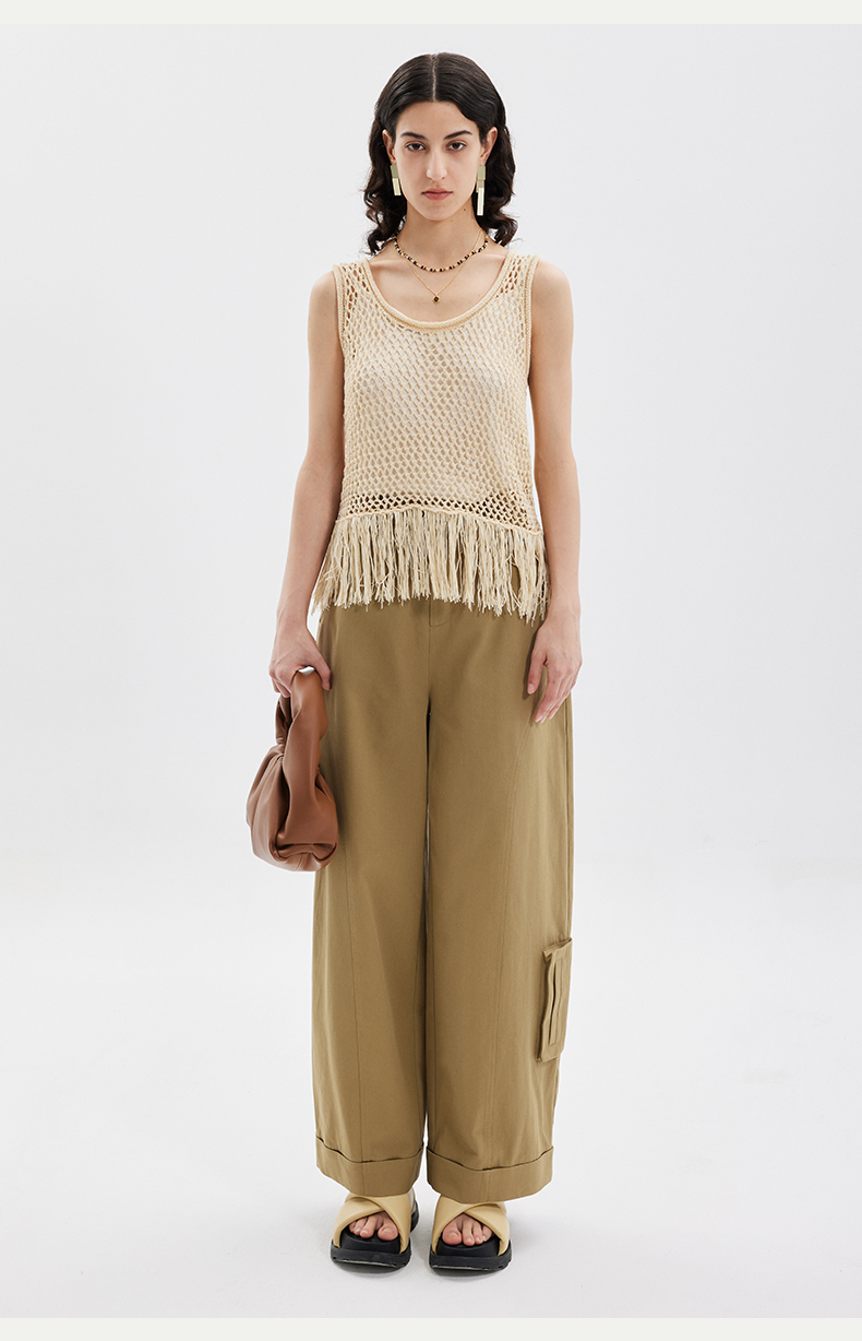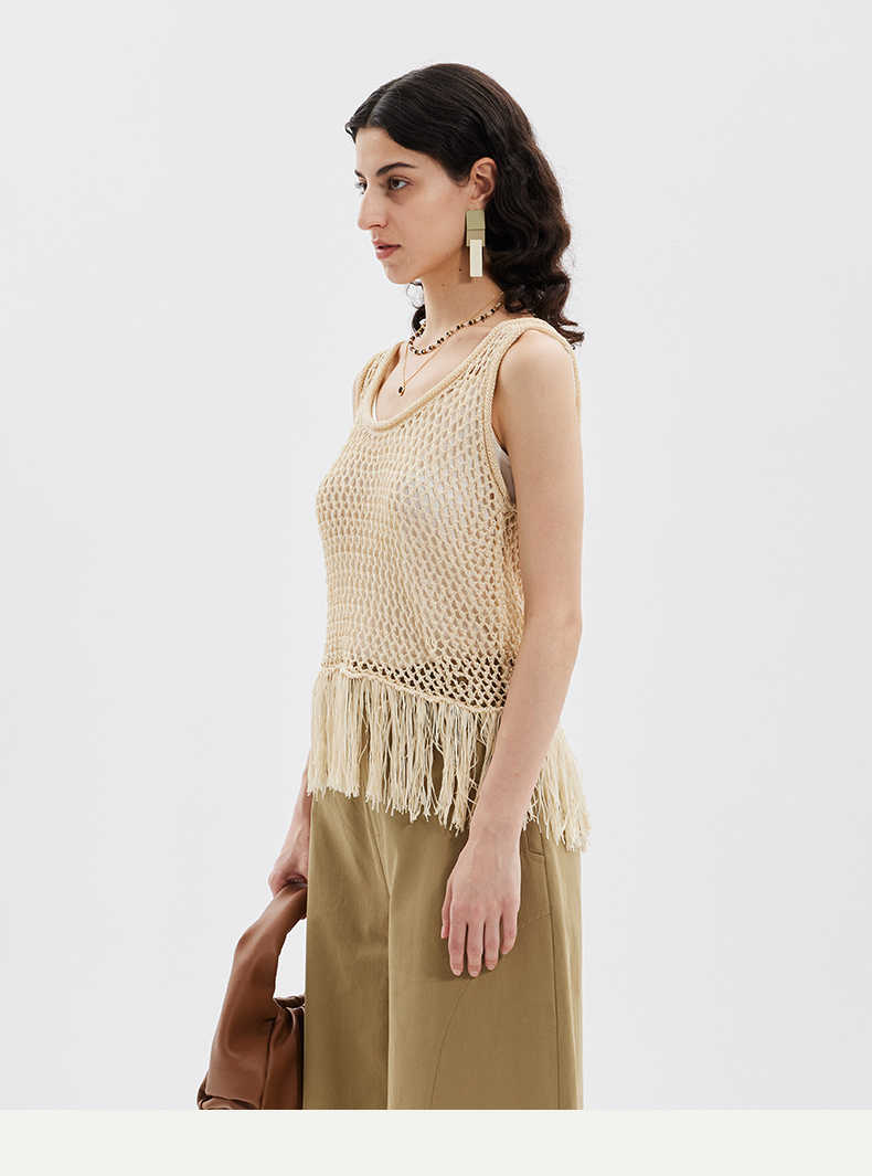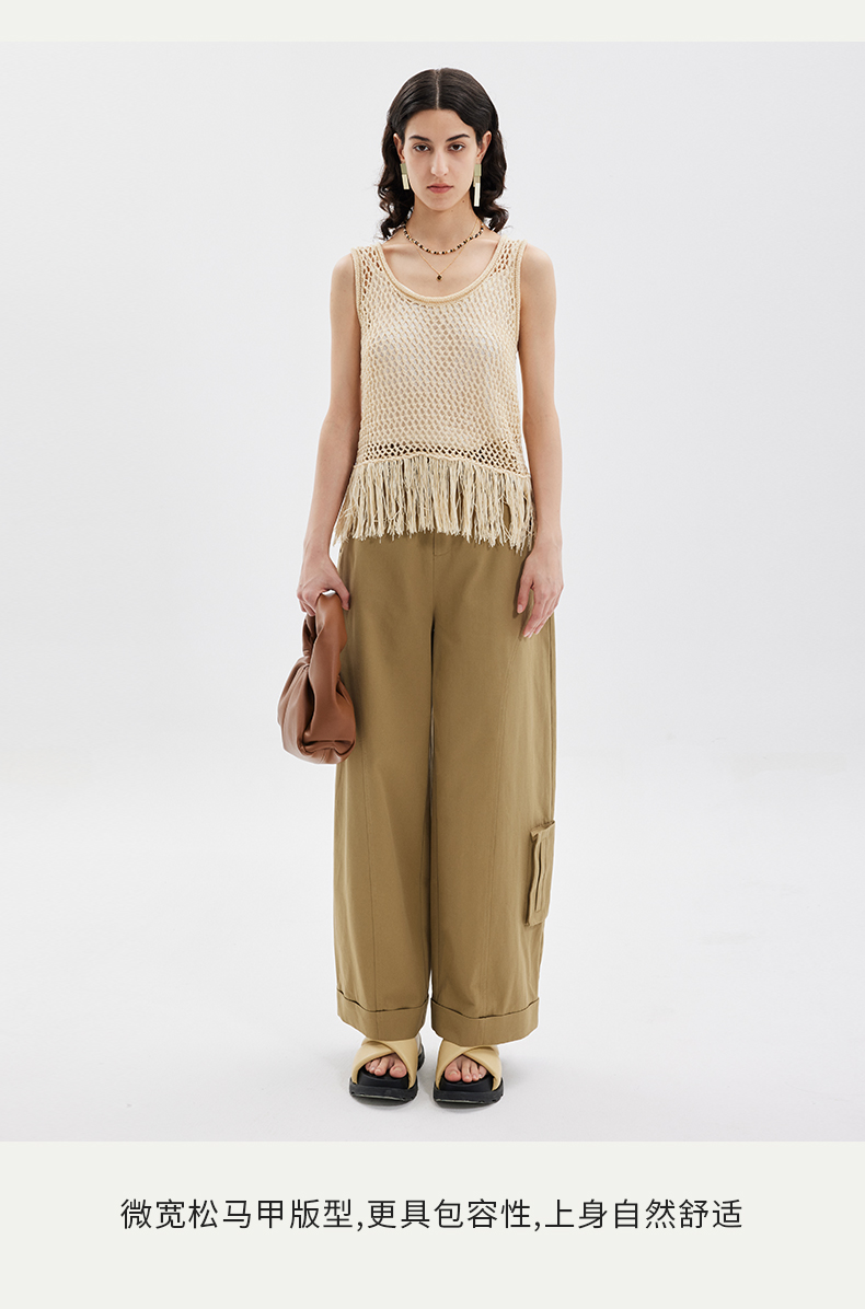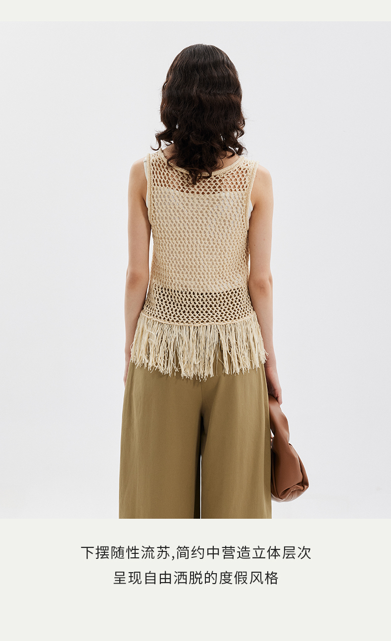 SELFWHO针织渔网吊带背心2024夏季新款宽松垂坠感慵懒度假风上衣