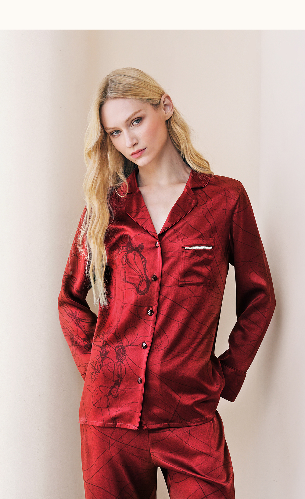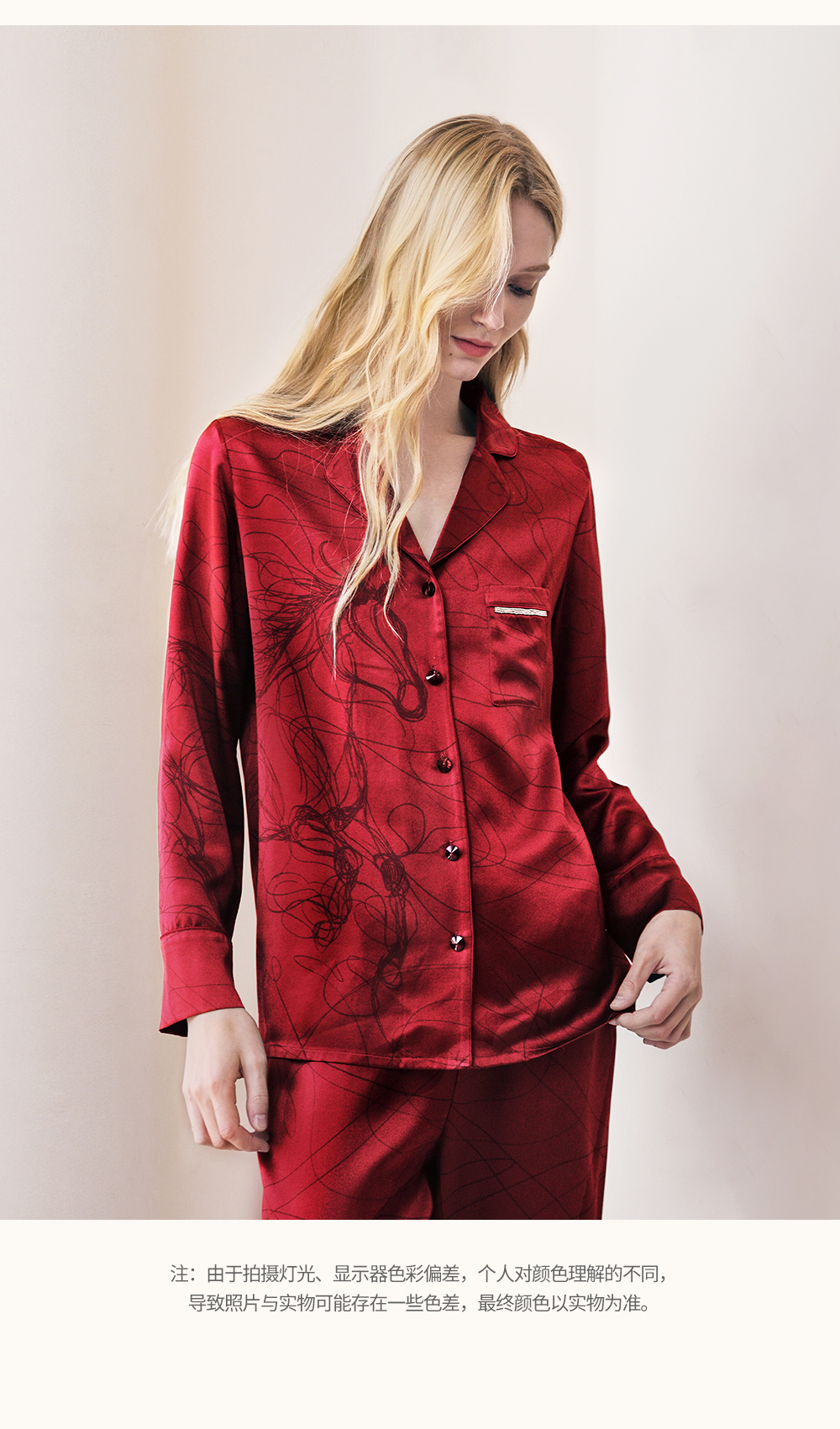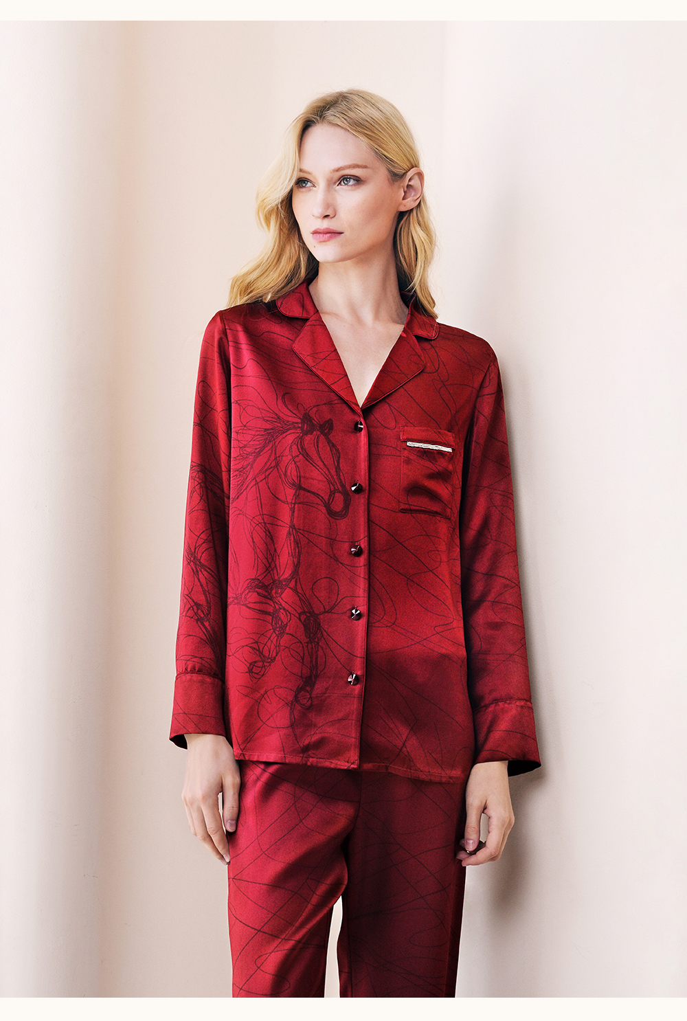 Solo seta22姆米女士真丝睡衣套装桑蚕丝印花家居服马年礼物礼盒