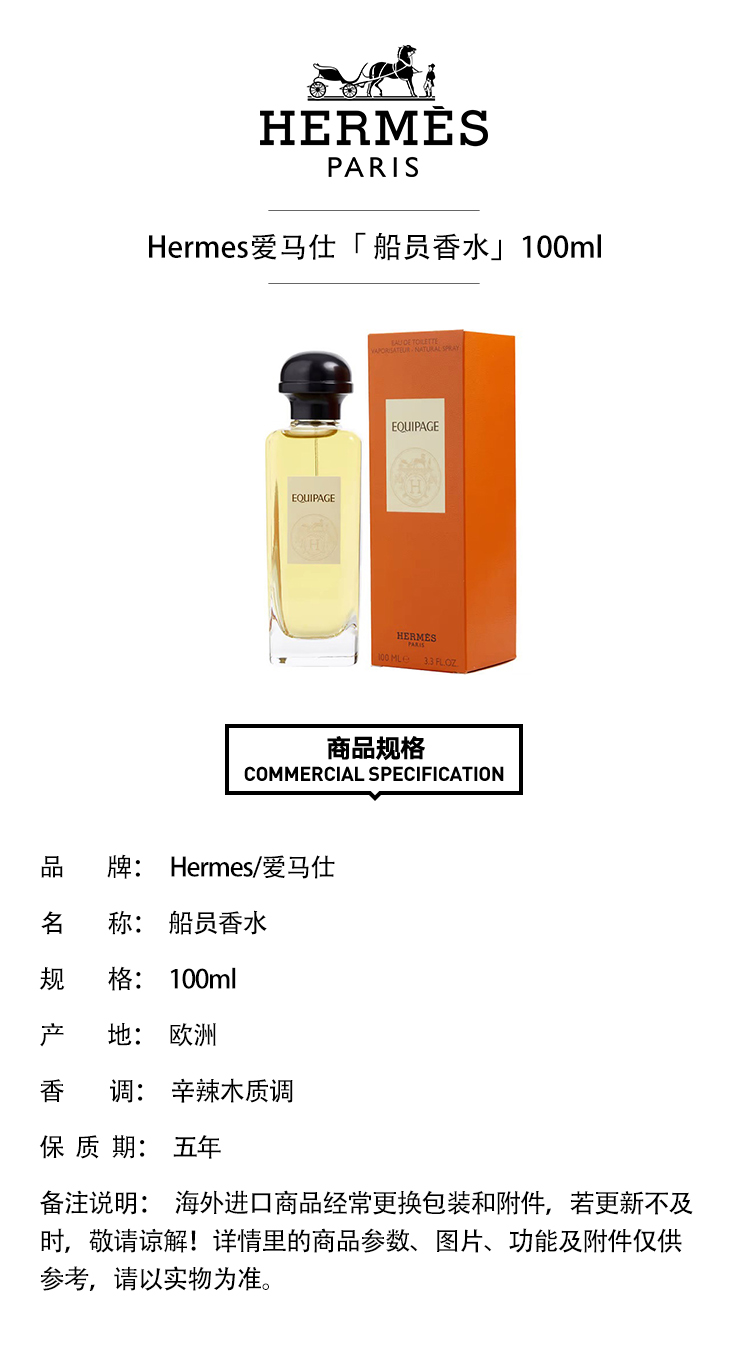 HERMES爱马仕船员香水100ml EDT淡香水