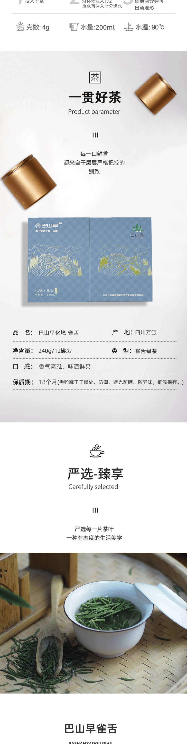 巴山早2024春茶明前精选特级雀舌绿茶240g礼盒装富硒之都万源高山雀舌特级茶叶