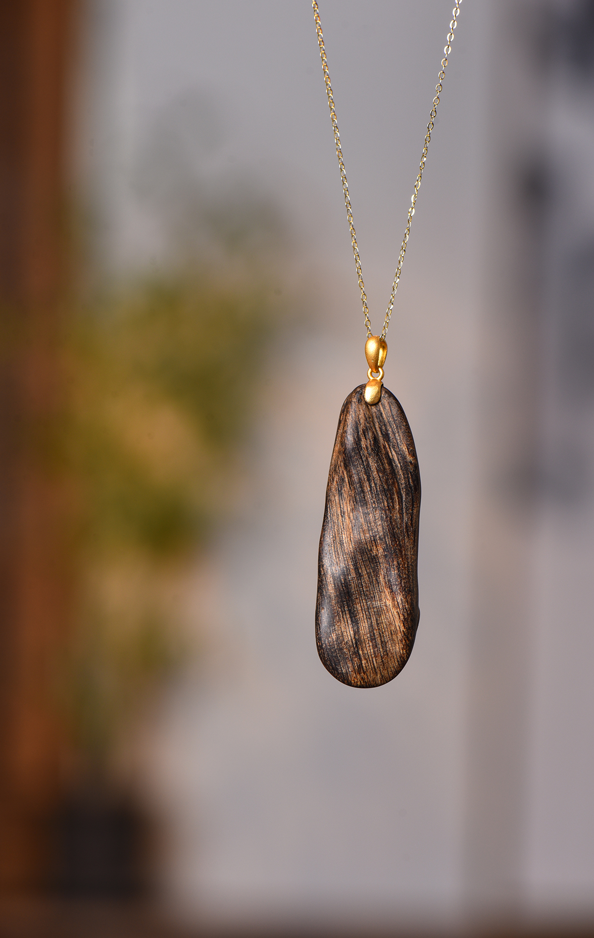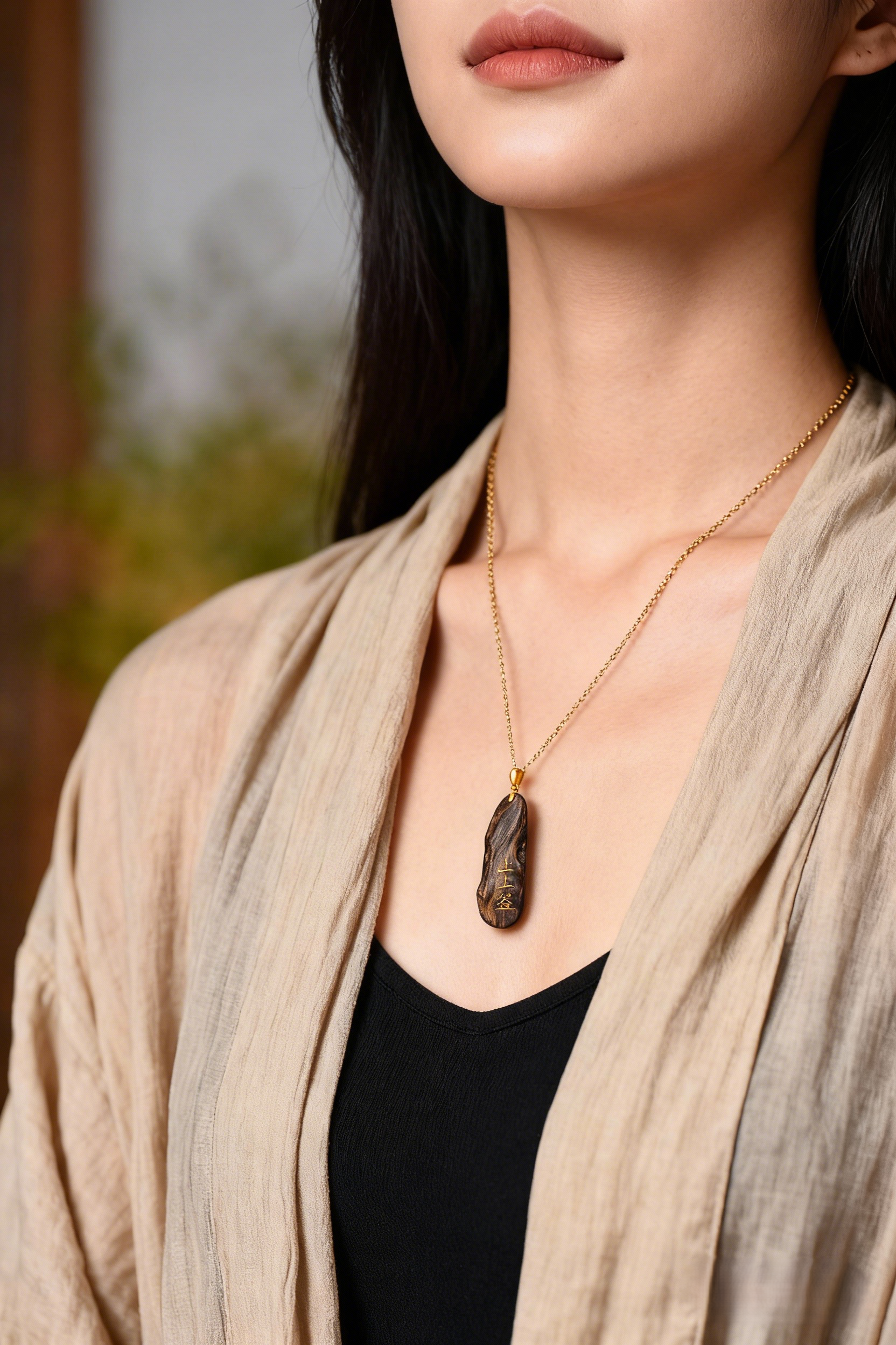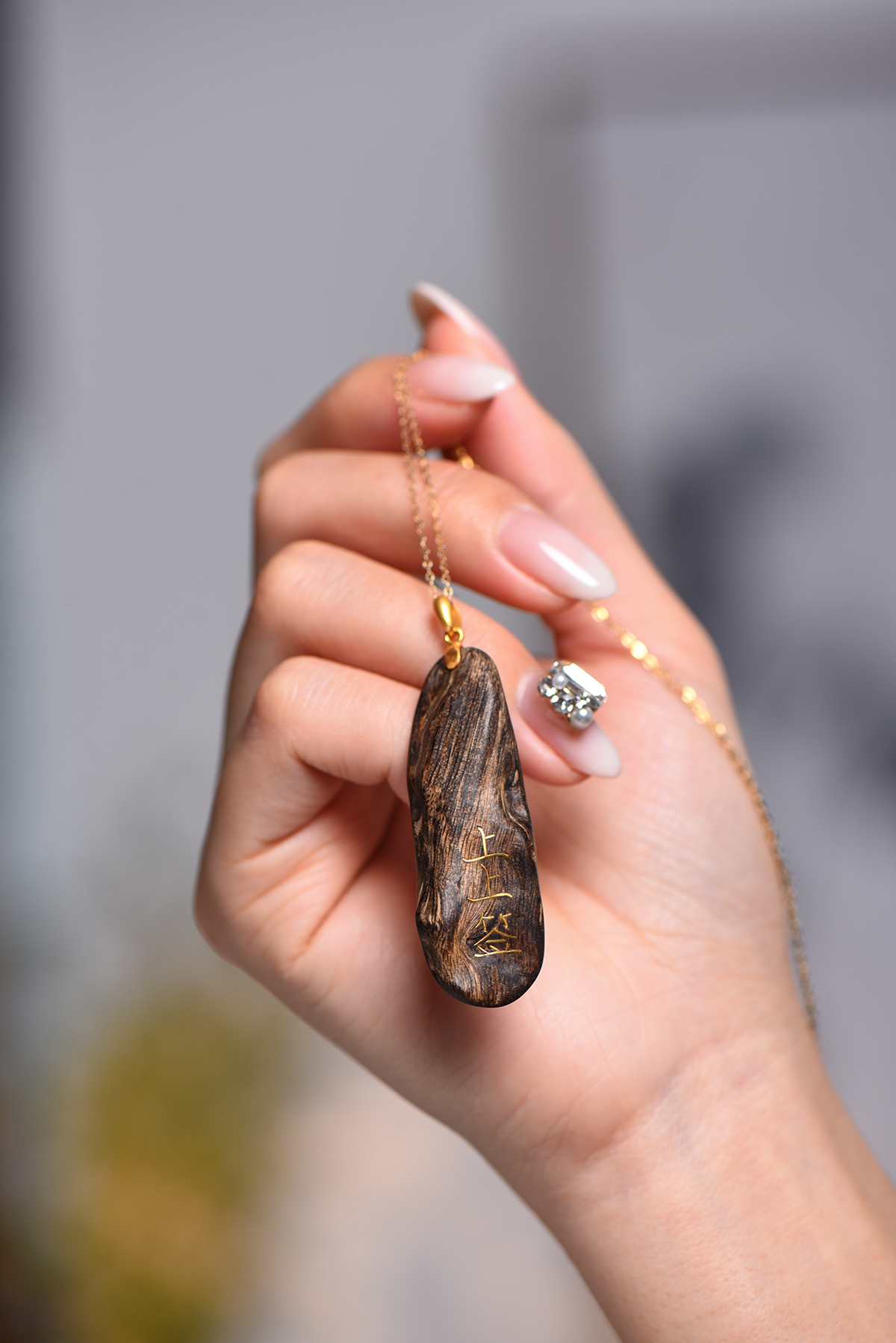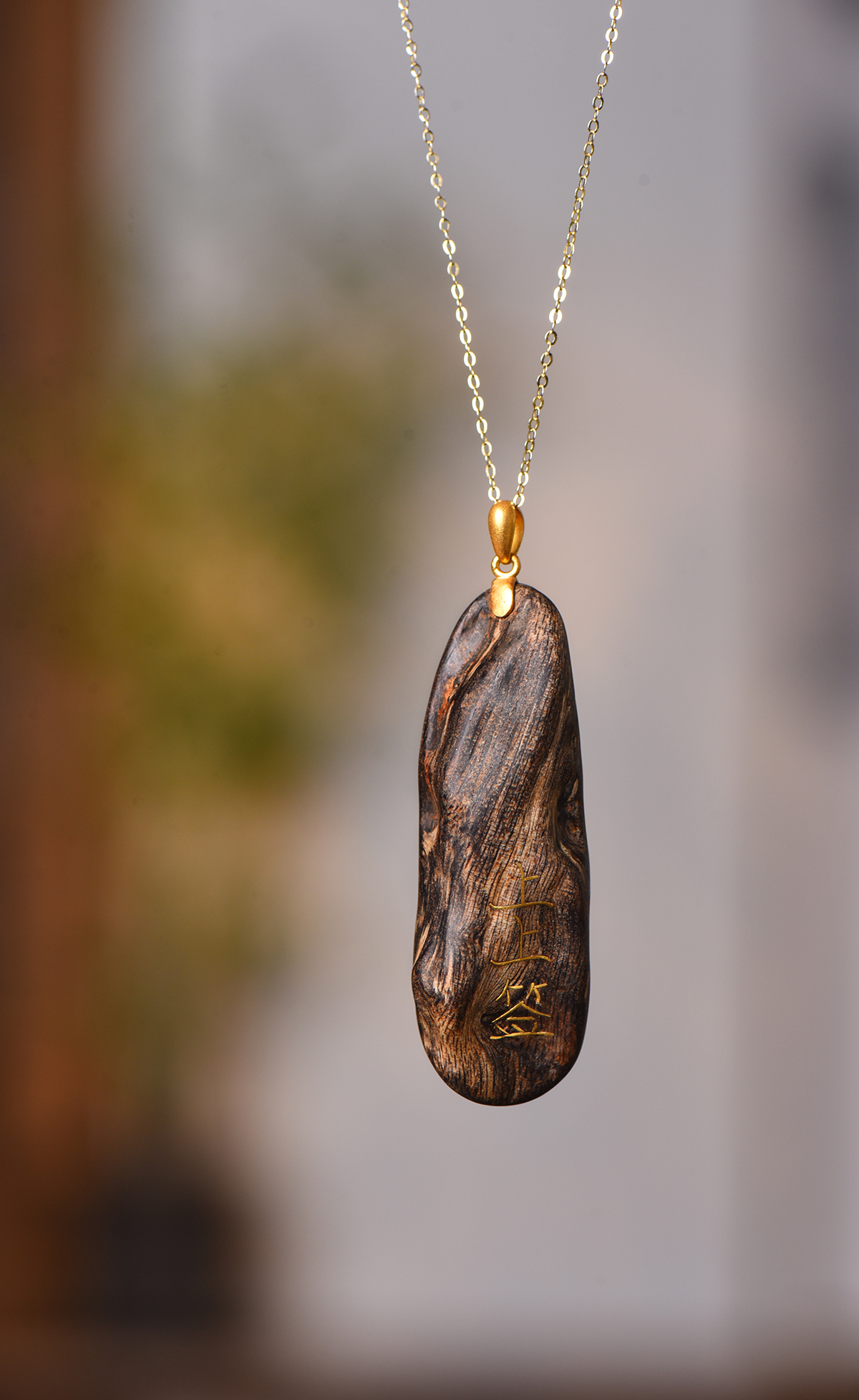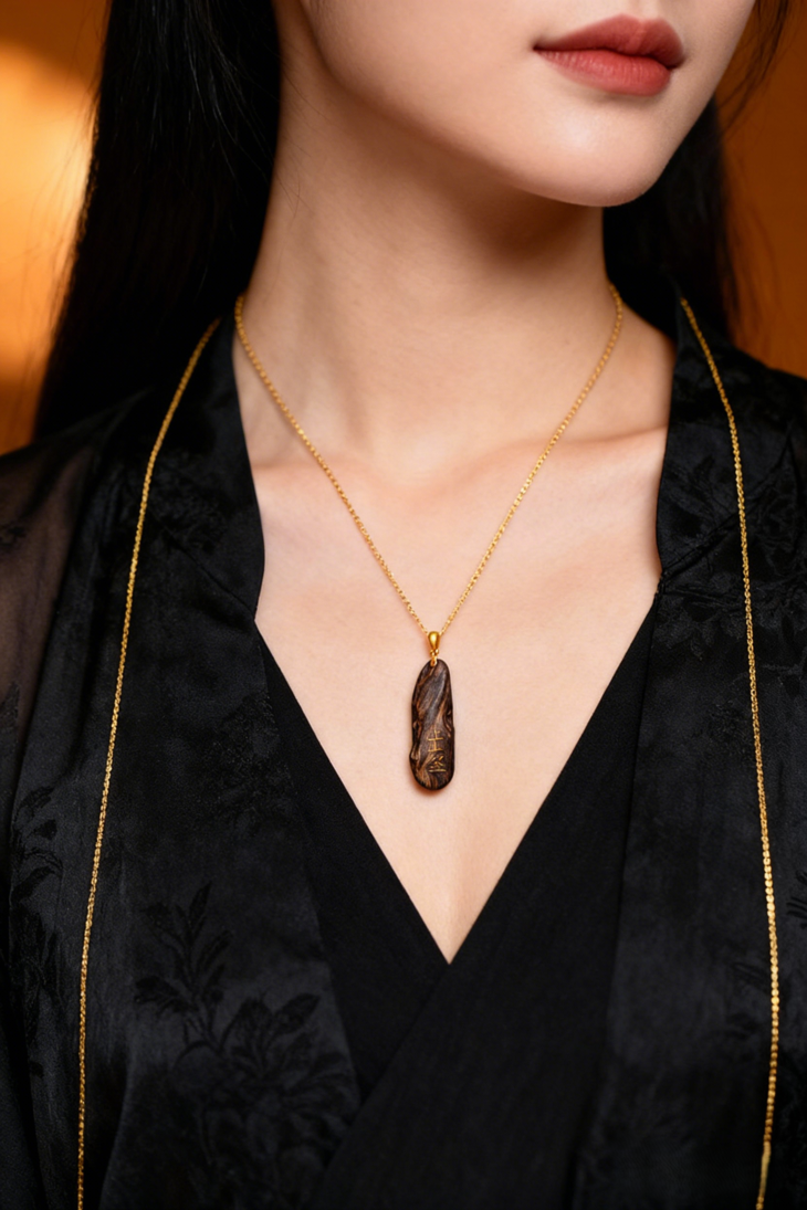 沉香随形原材的天然纹路为基底(保留油脂、疤结的岁月质感),错金呈现 “上上签” 文字符号 ——“随形” 是对自然的敬畏。