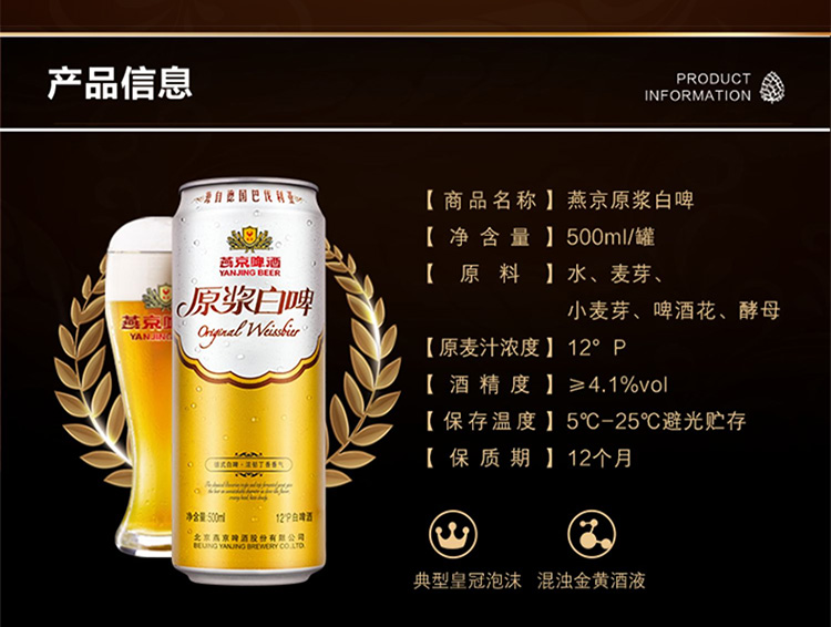 燕京啤酒 原浆白啤500mlX12易拉罐
