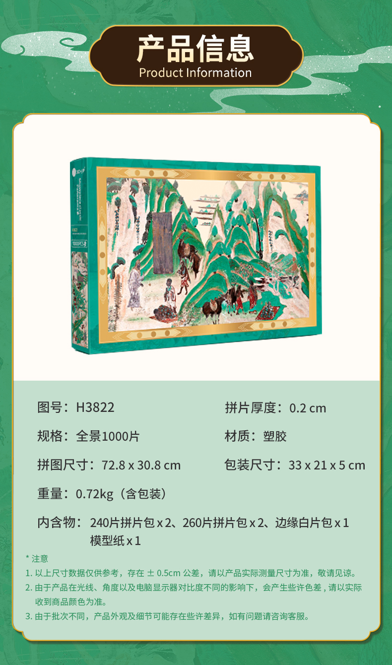 1000片 平面塑料拼图 H3822 全景长版拼图-敦煌益智拼图-青绿山水