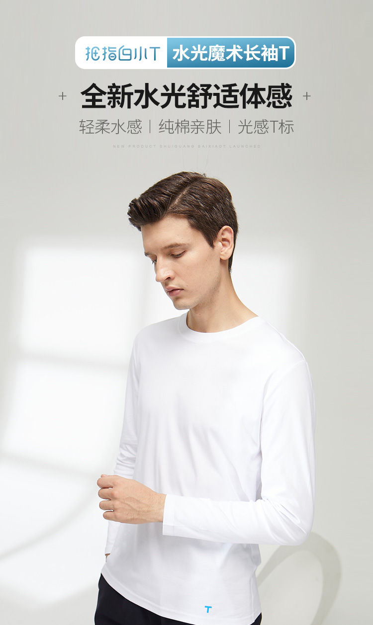 拇指白小T水光魔术长袖T恤