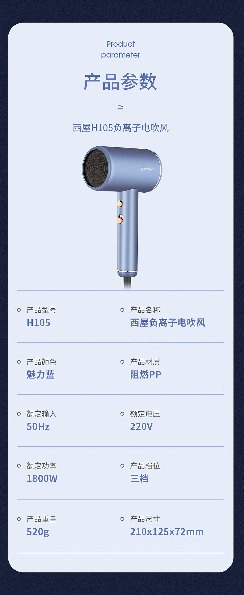 美国西屋(Westinghouse)护发吹风机 低噪电吹风H105 /H106