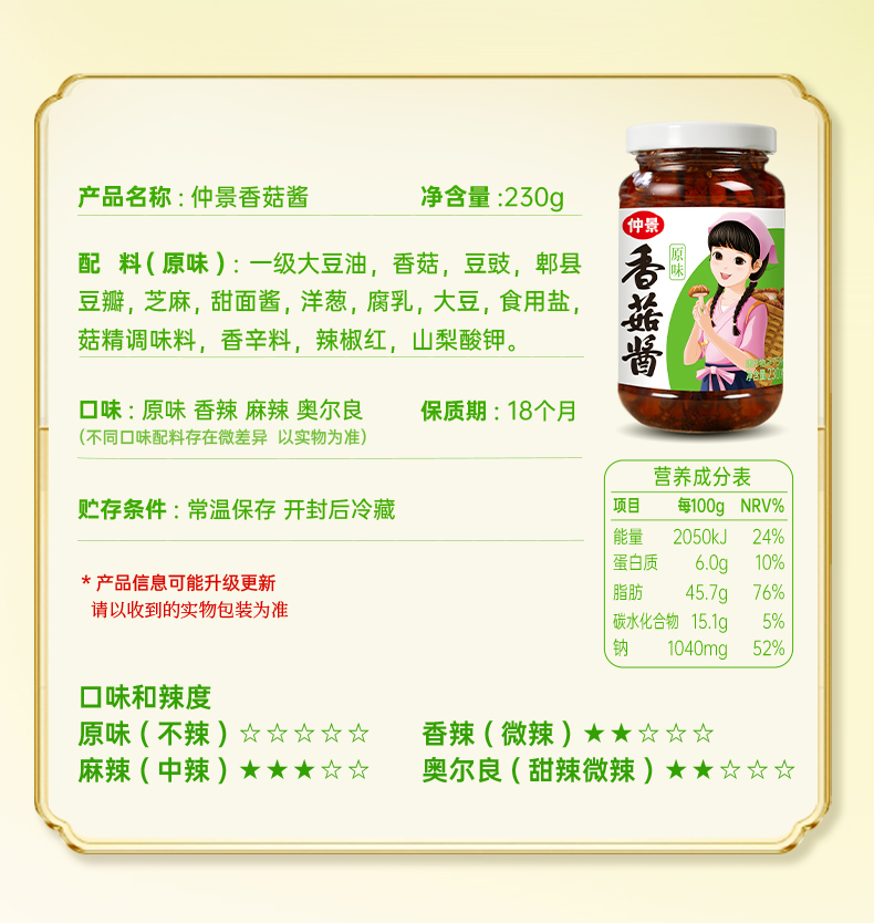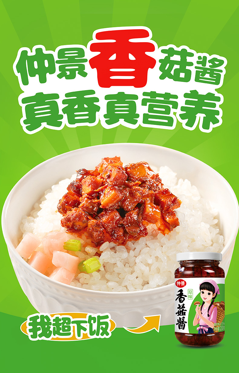 230g仲景原味香菇酱 优选西峡香菇 Q弹韧爽肉感十足