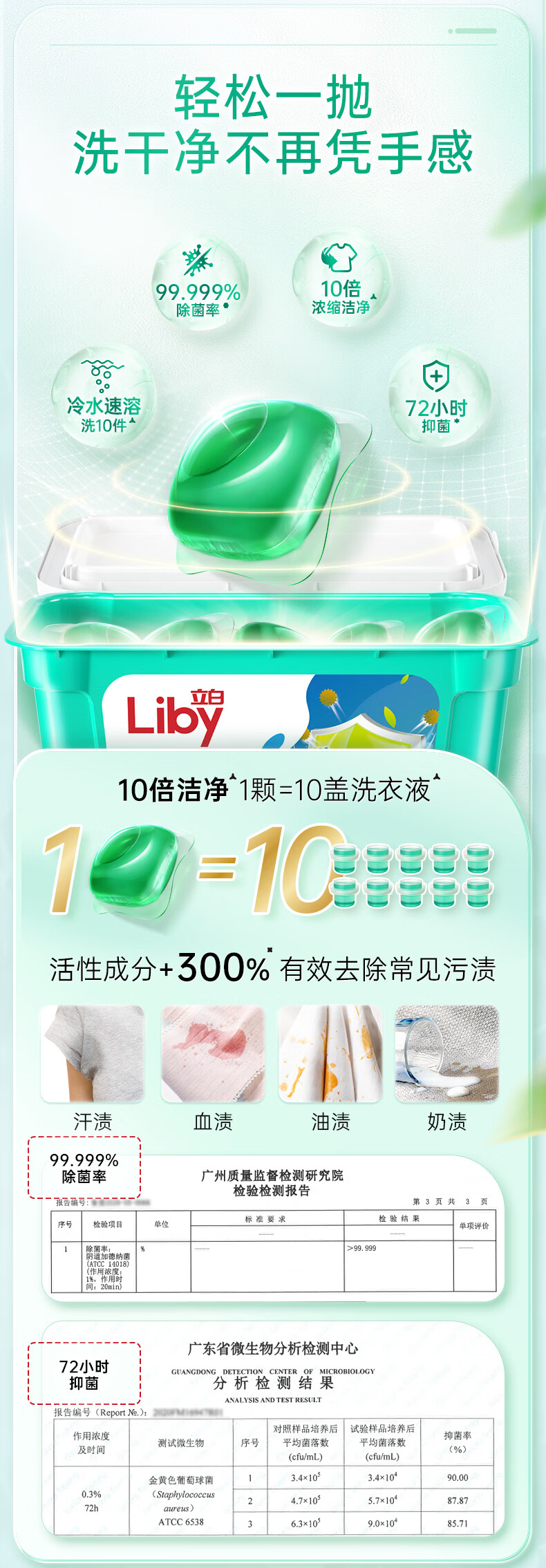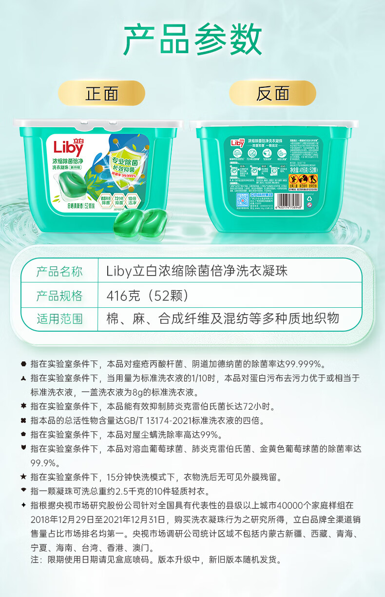 立白 洗衣凝珠 浓缩除菌倍净洗衣凝珠52颗*2盒