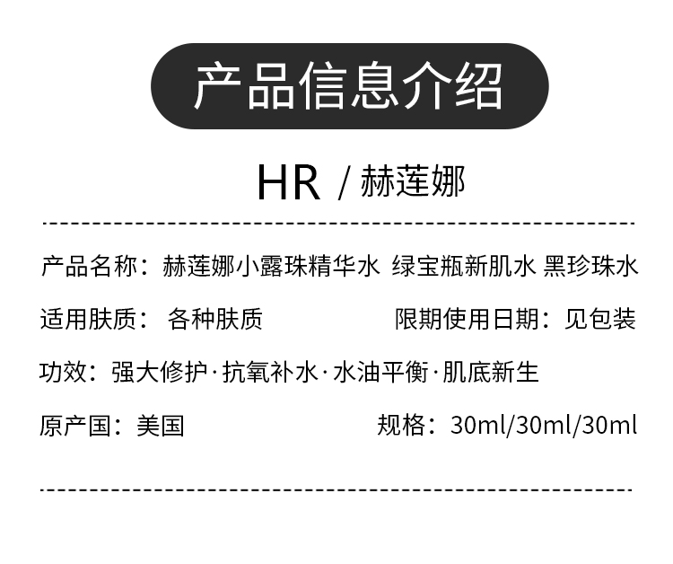 严选 | HR赫莲娜补水组合 黑珍珠水30ml+小露珠精华水30ml+绿宝瓶新肌水30ml
