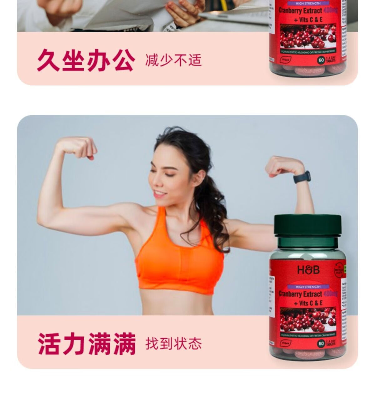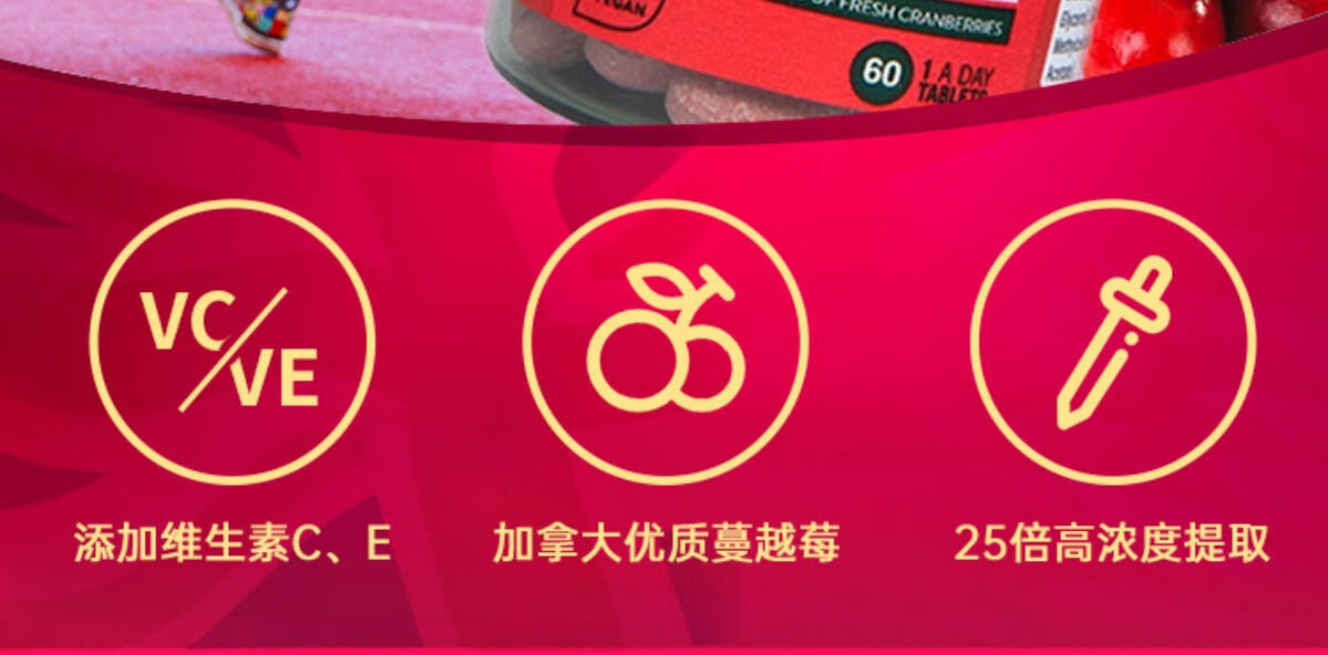 【保税仓】HollandBarrett荷柏瑞高含量蔓越莓花青素提取片400mg 添加维生素C、E 60片