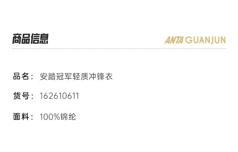 安踏冠军HK100户外越野跑轻锋3L冲锋衣女士防水透湿硬壳162610611