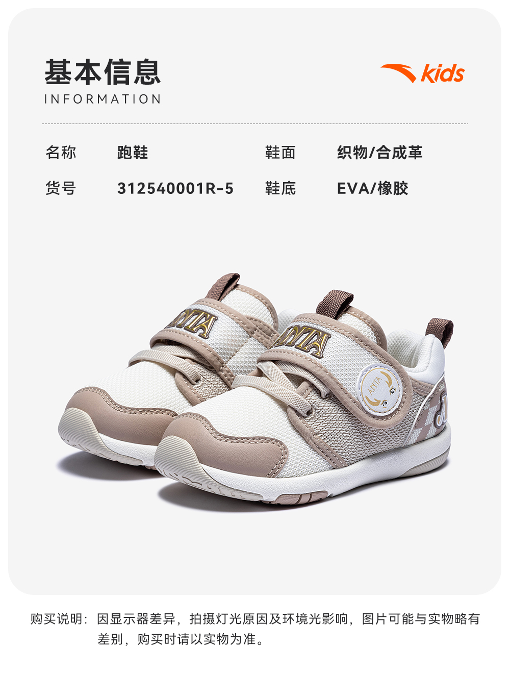 稳稳不倒翁 | 安踏学步鞋二阶段秋冬新款男女宝宝幼儿园鞋运动鞋312540001R