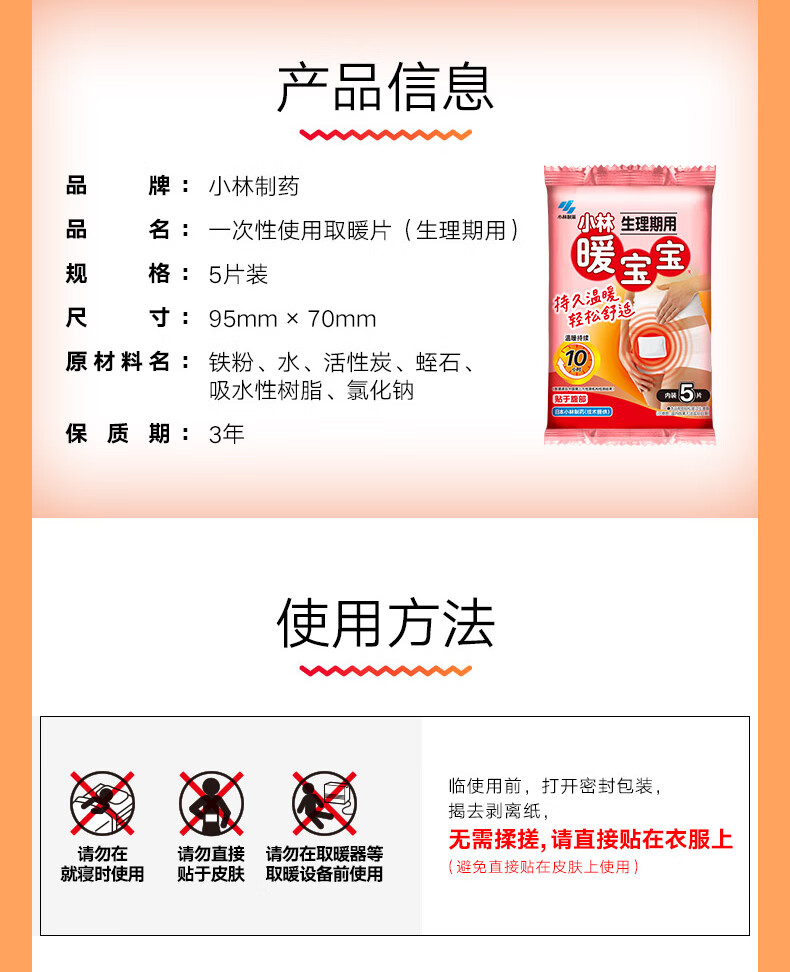 小林制药 暖宝宝生理期保暖贴姨妈女生生理期宫暖发热贴 5片装/包