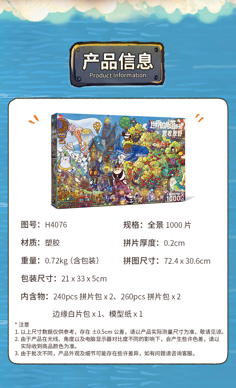 1000片 平面塑料拼图 H4076 全景长版拼图-泡面-世界的角落系列-丰收原野