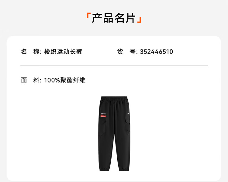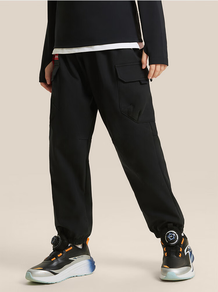 安踏儿童长裤男大童24冬防泼水科技加绒加厚梭织运动长裤352446510