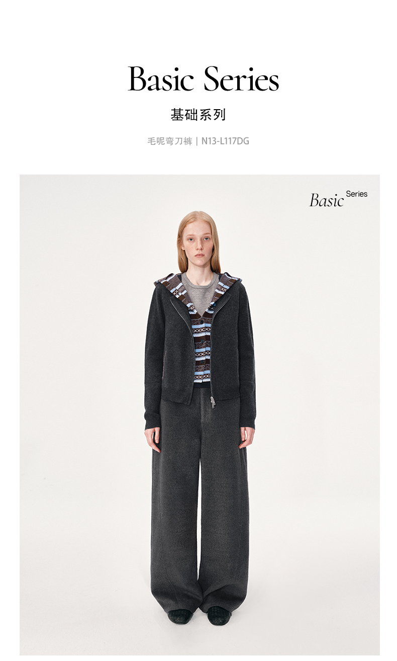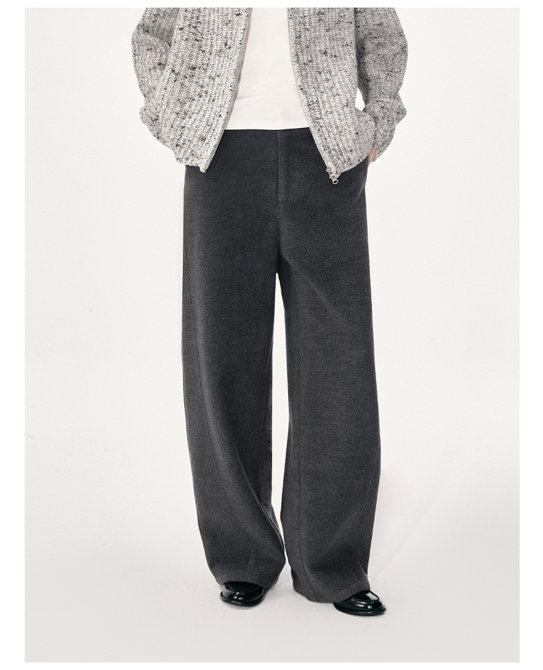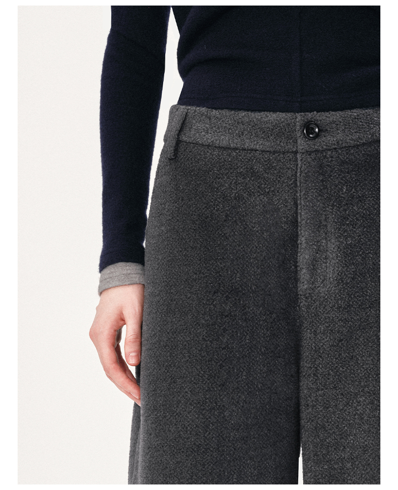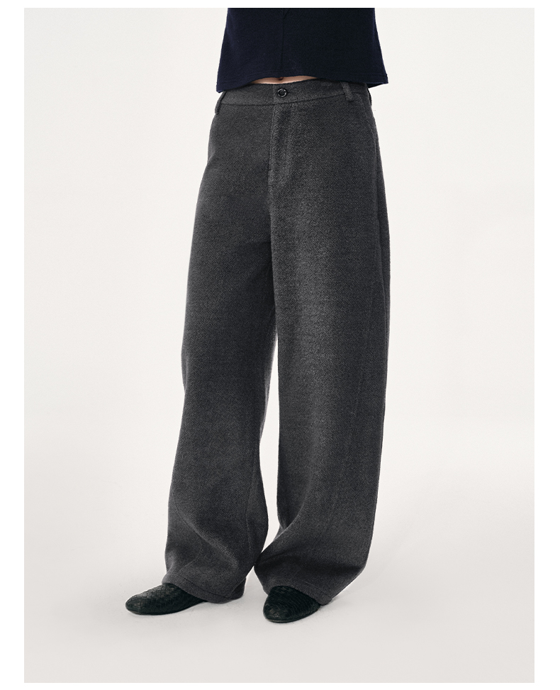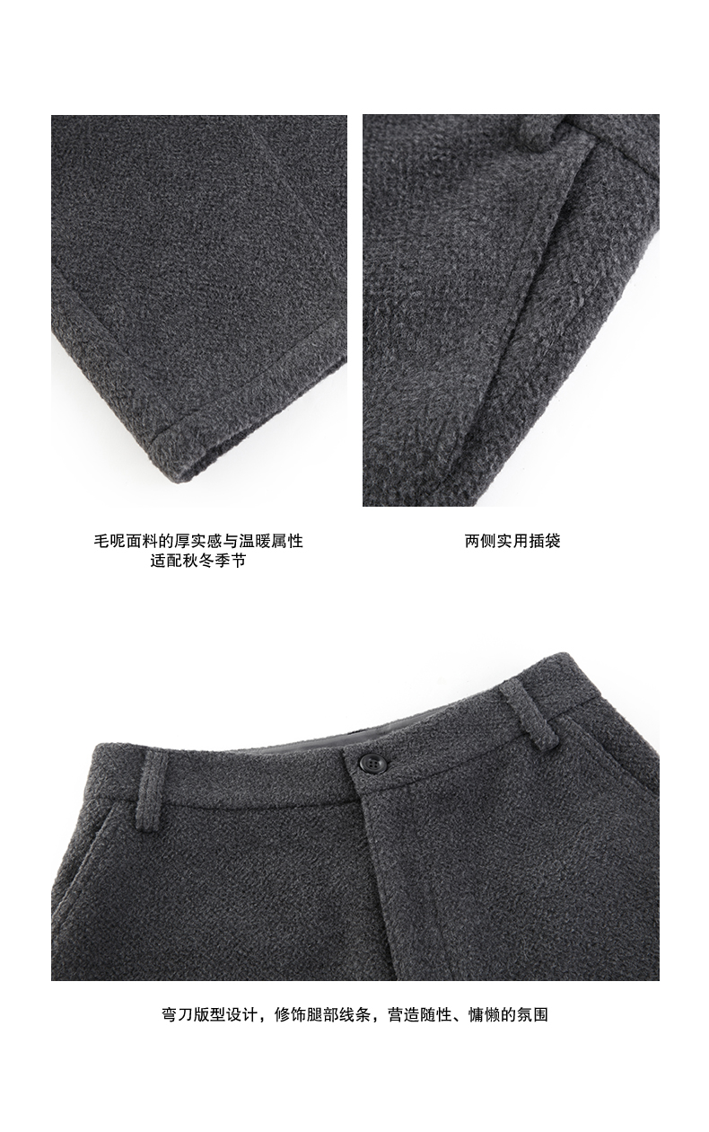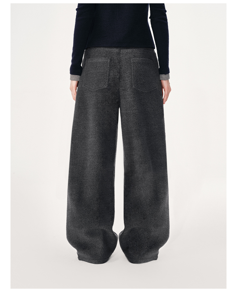 NUTH复古宽松加厚保暖毛呢弯刀休闲裤女 深灰色