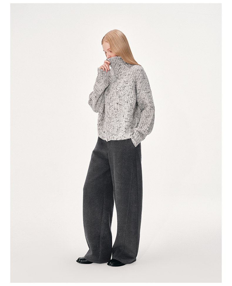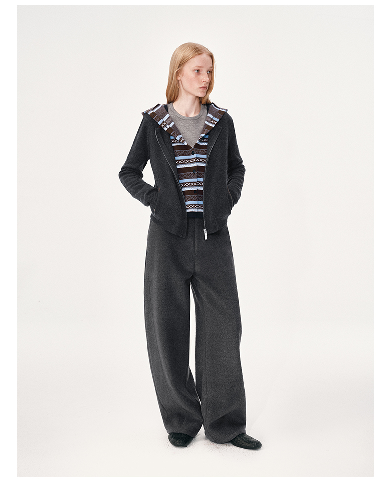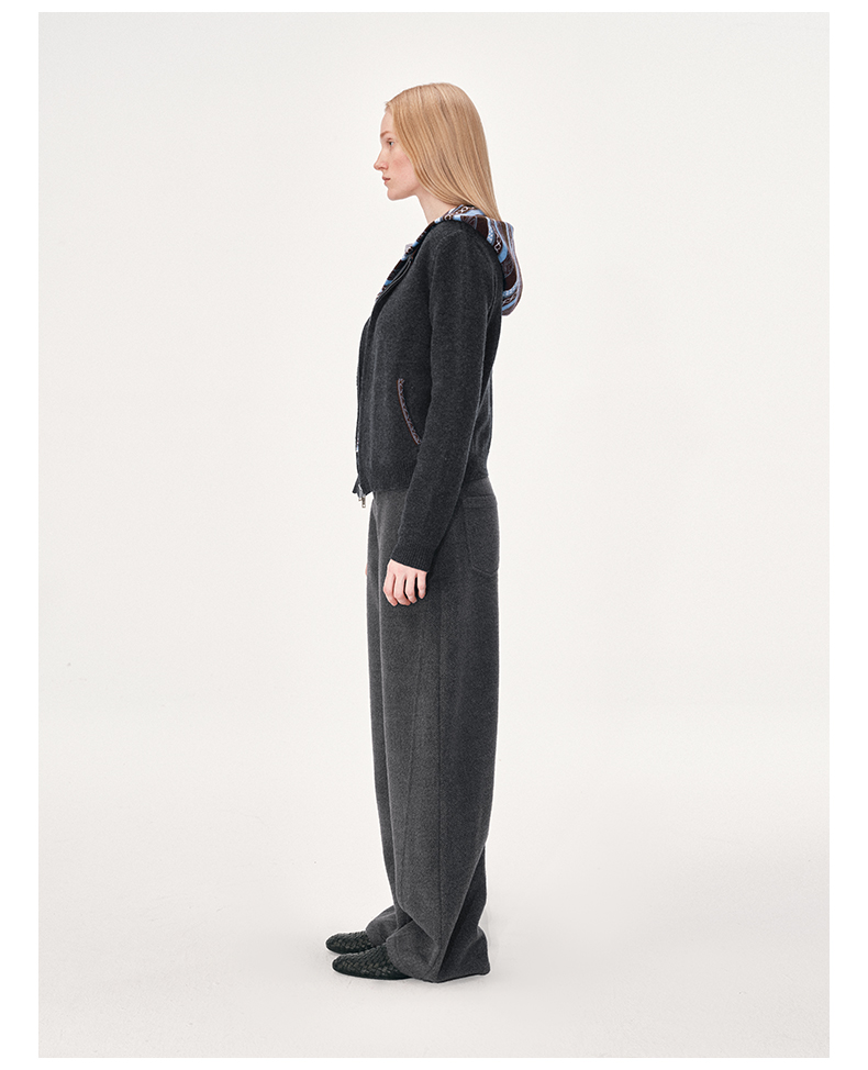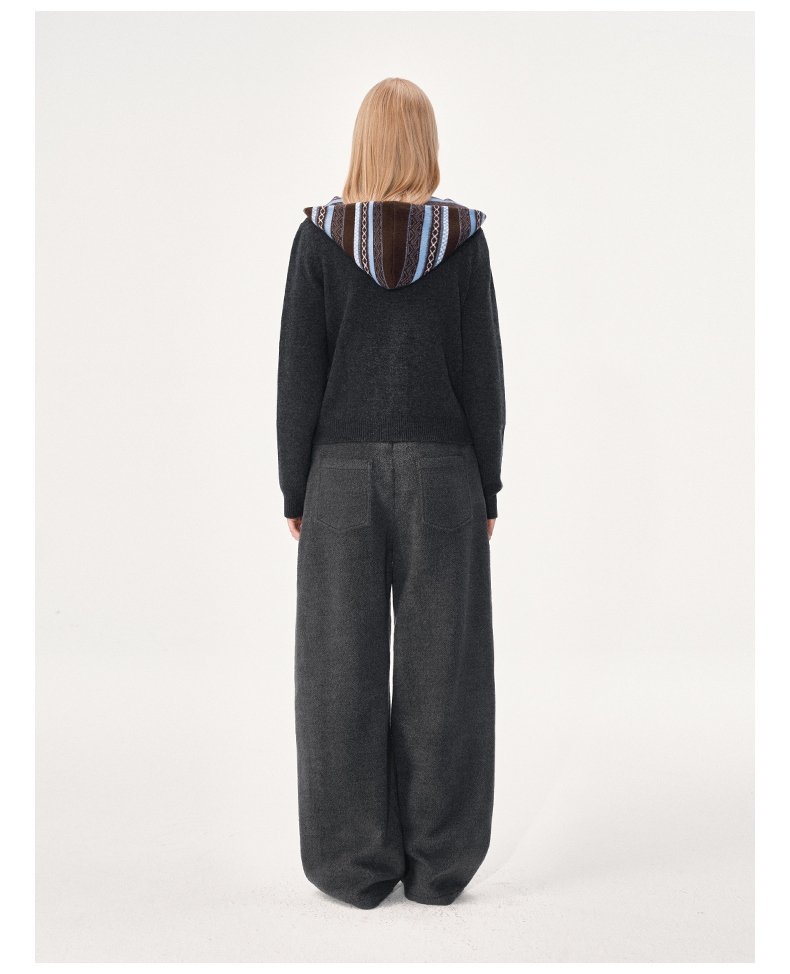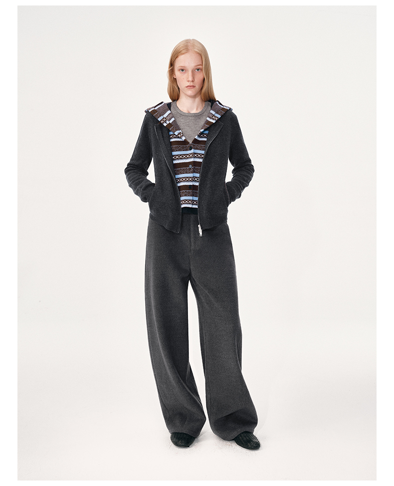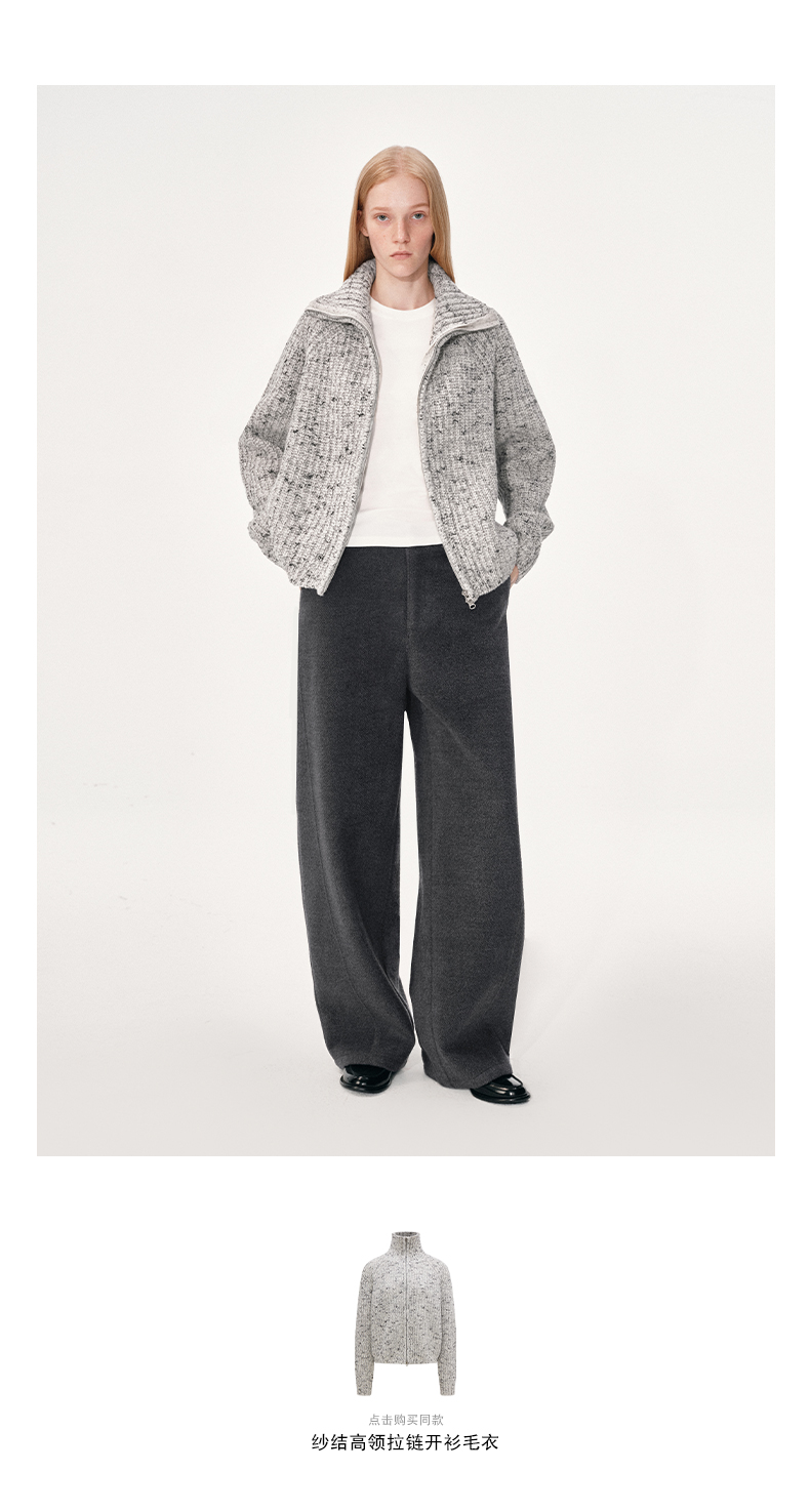 NUTH复古宽松加厚保暖毛呢弯刀休闲裤女 深灰色