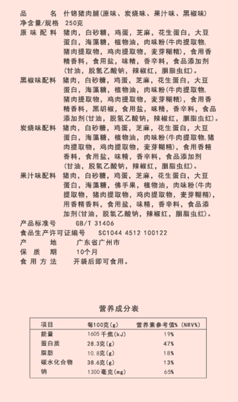 广州酒家广府经典腊味猪肉脯礼盒770g
