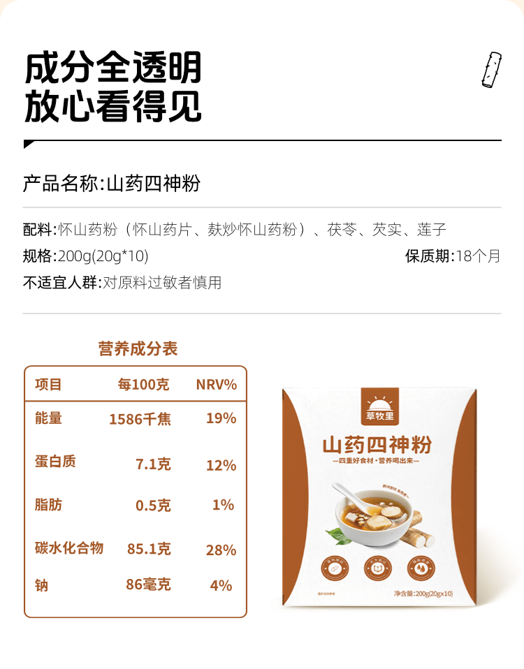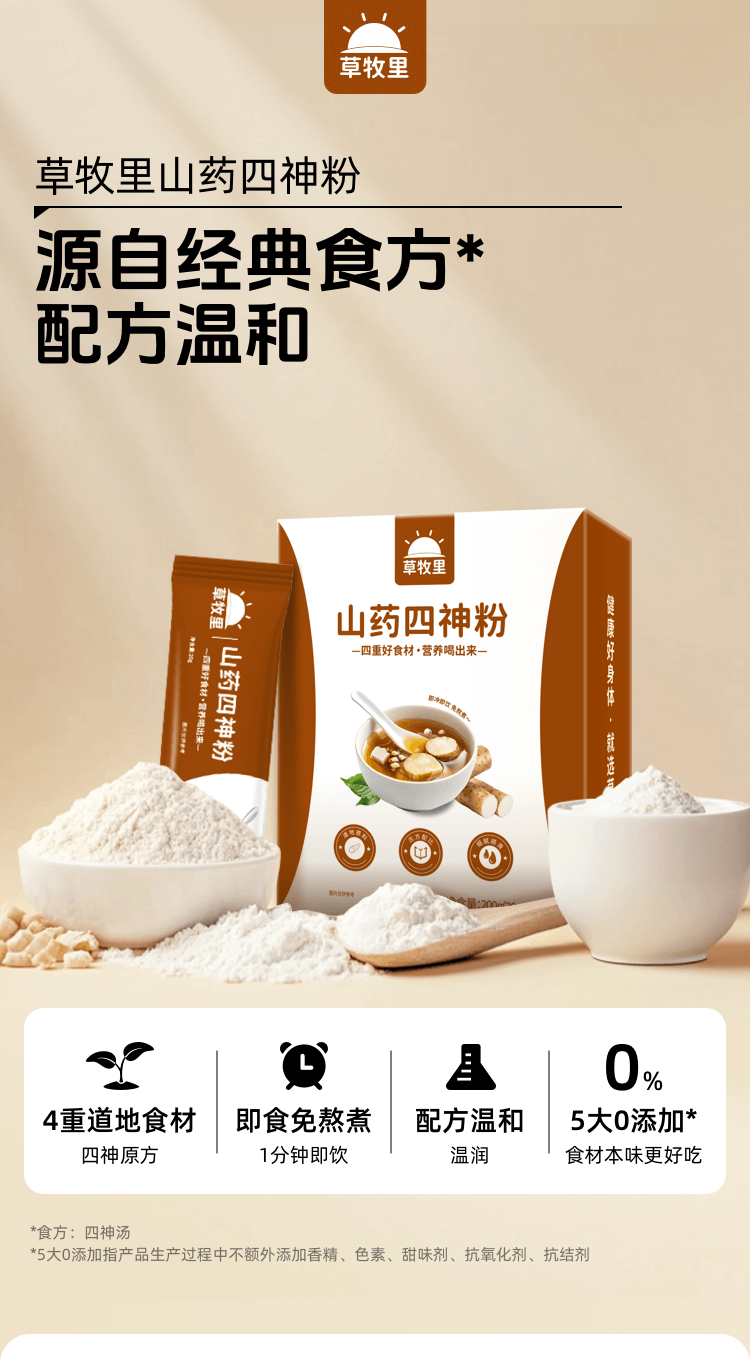 【即食免煮】草牧里 山药四神粉 20g*10条/盒 古方配比温润滋养