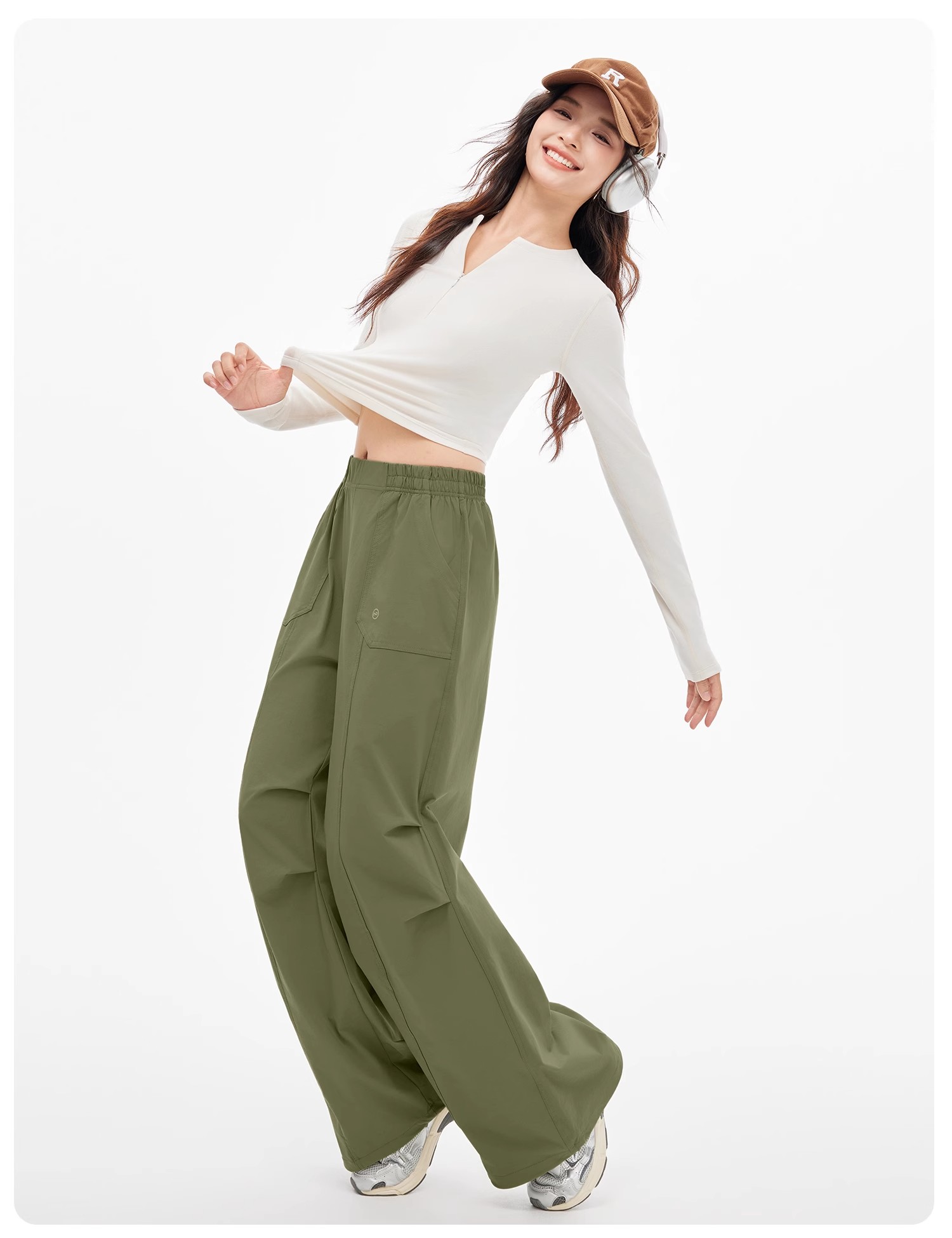 【Neverme】缩褶阔腿工装运动裤SK9830