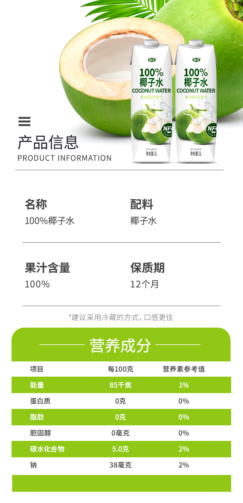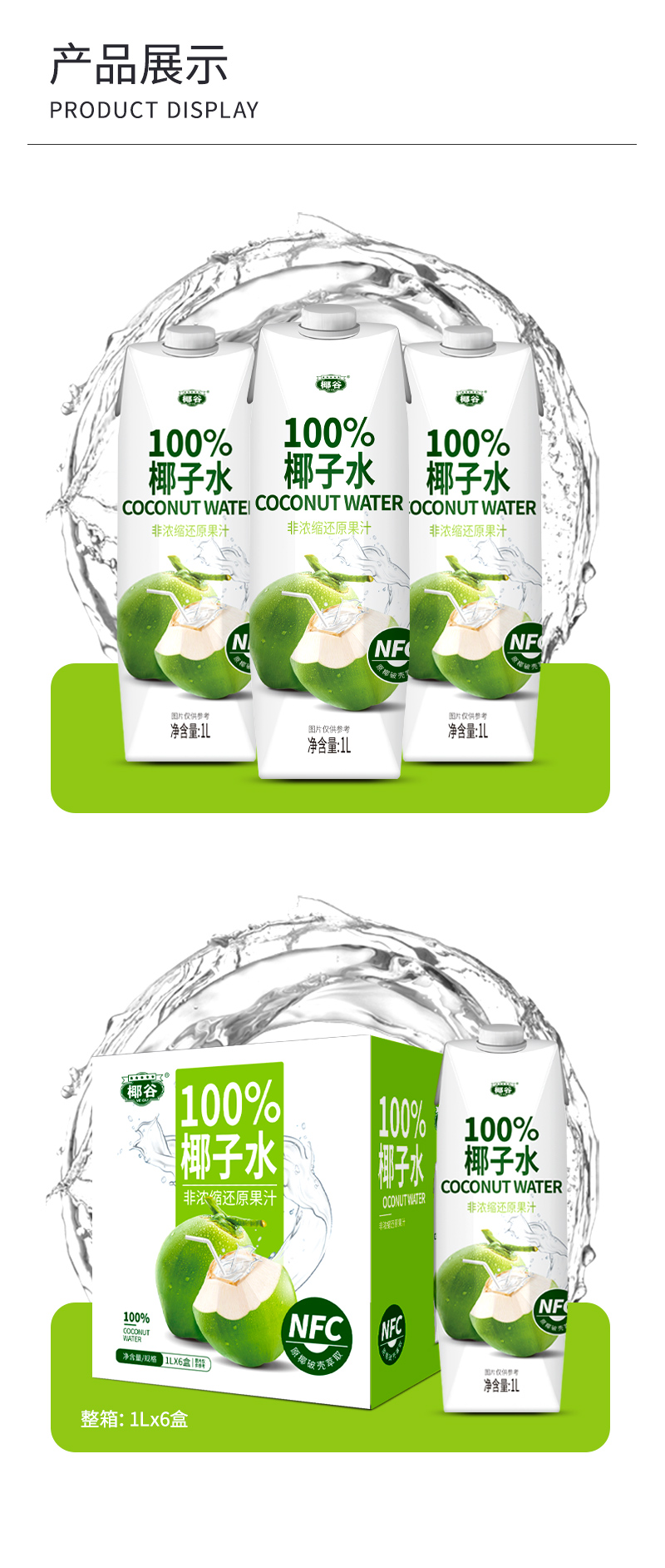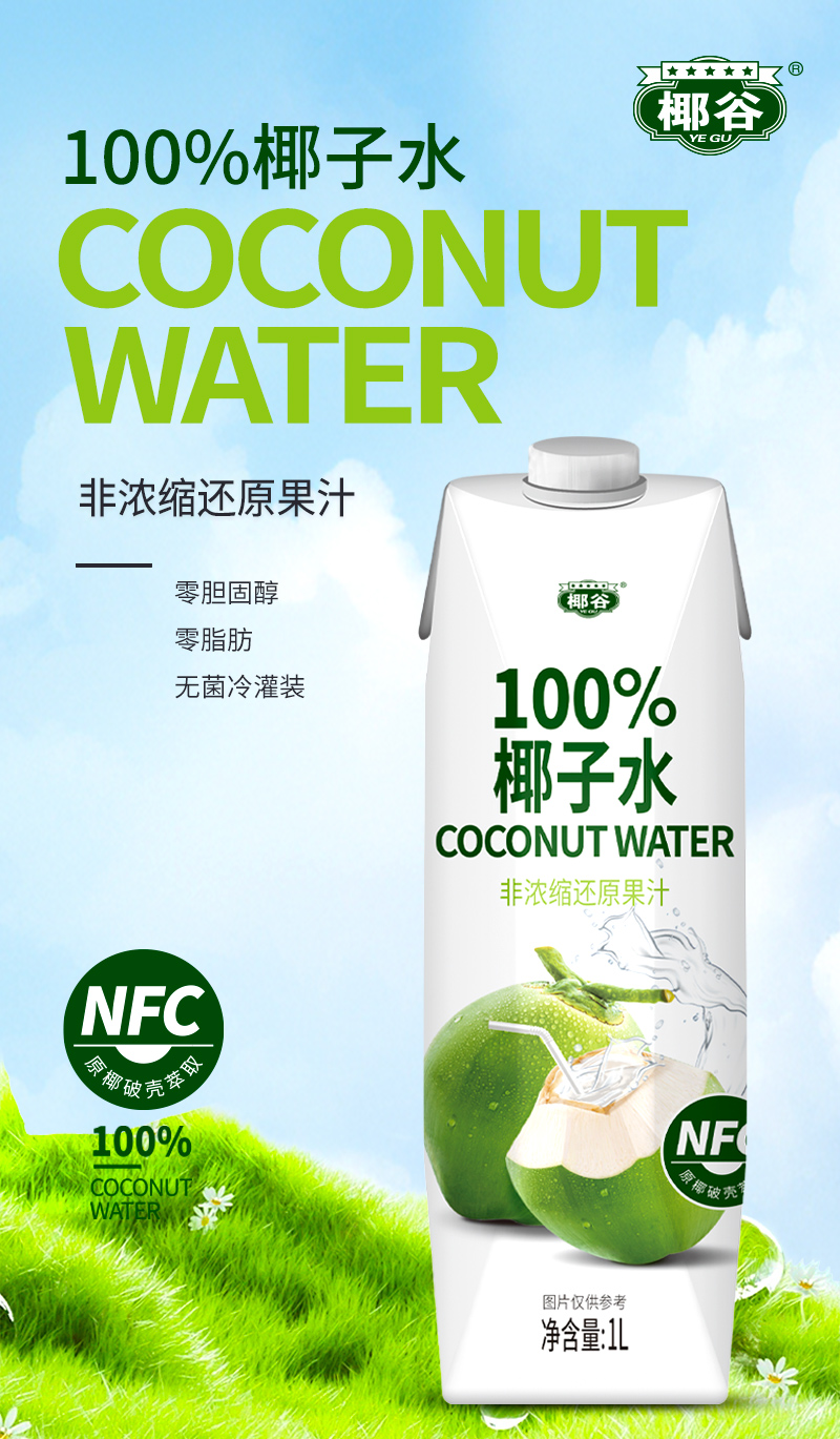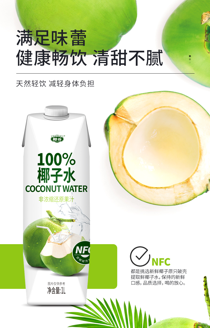 椰谷 NFC100%椰子水 1L×6盒 冲调饮料