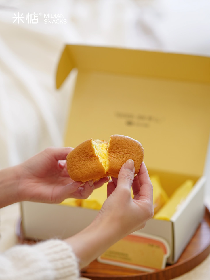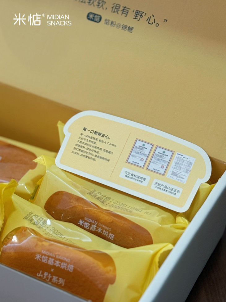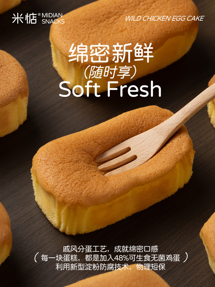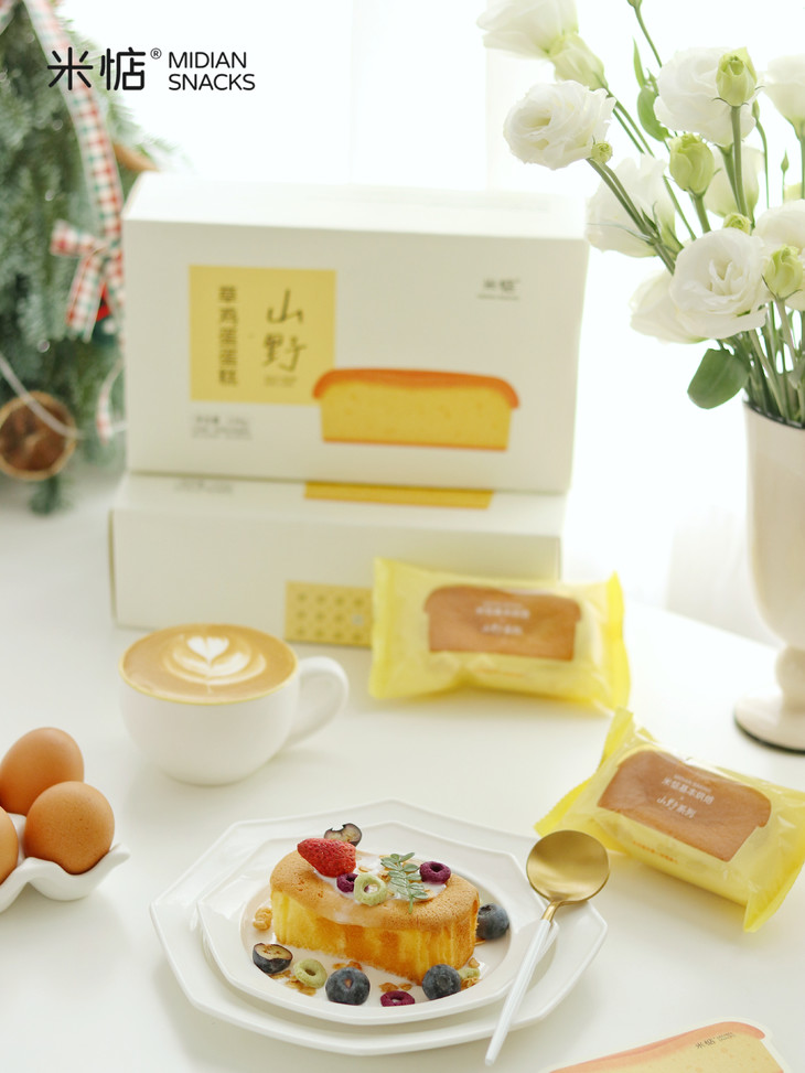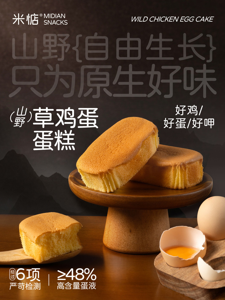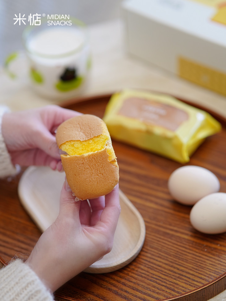 😍【米惦山野草鸡蛋蛋糕】👅是童年鸡蛋糕的味道没错了😝😝 🔶≥48%山野草鸡蛋液 蛋香浓郁不腥腻 🔶戚风分蛋工艺 扎实回弹 口感绵密 🔶创新物理保鲜 无防腐剂 锁鲜如现烤