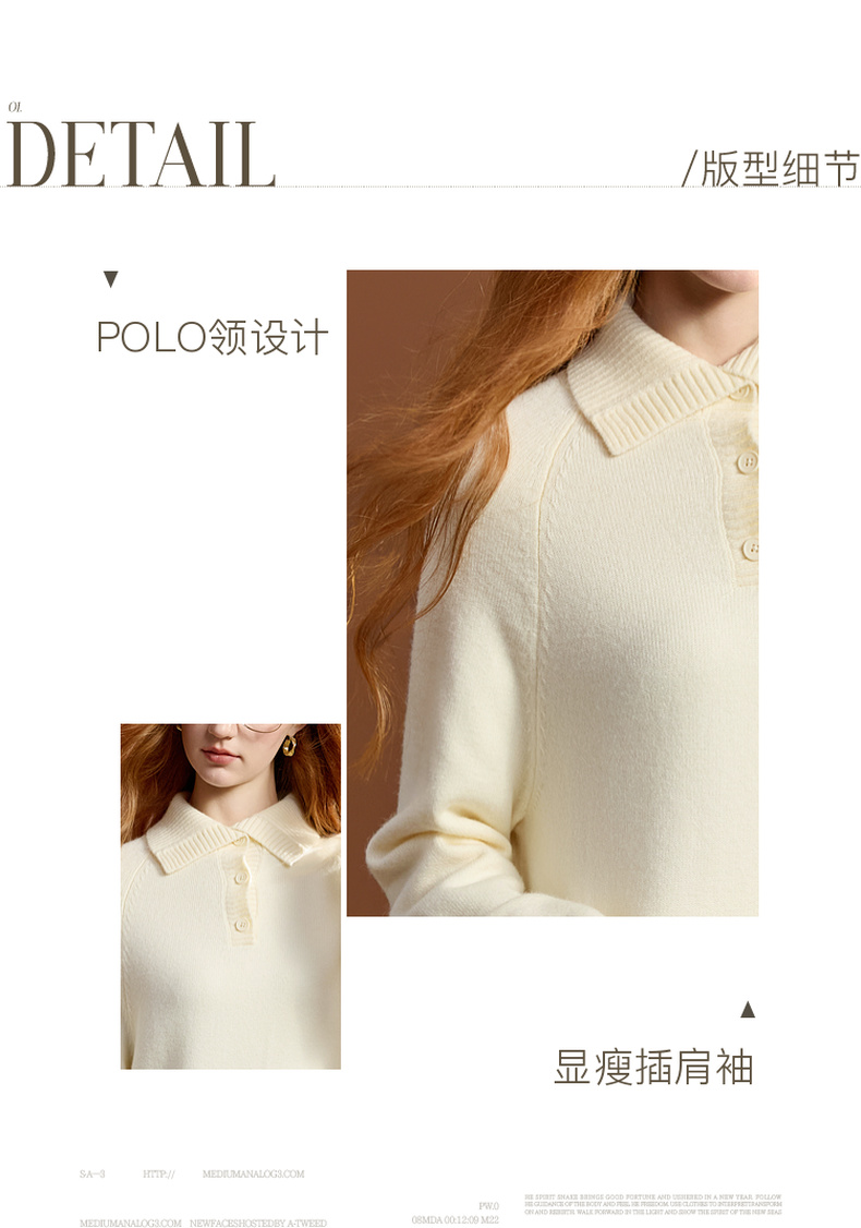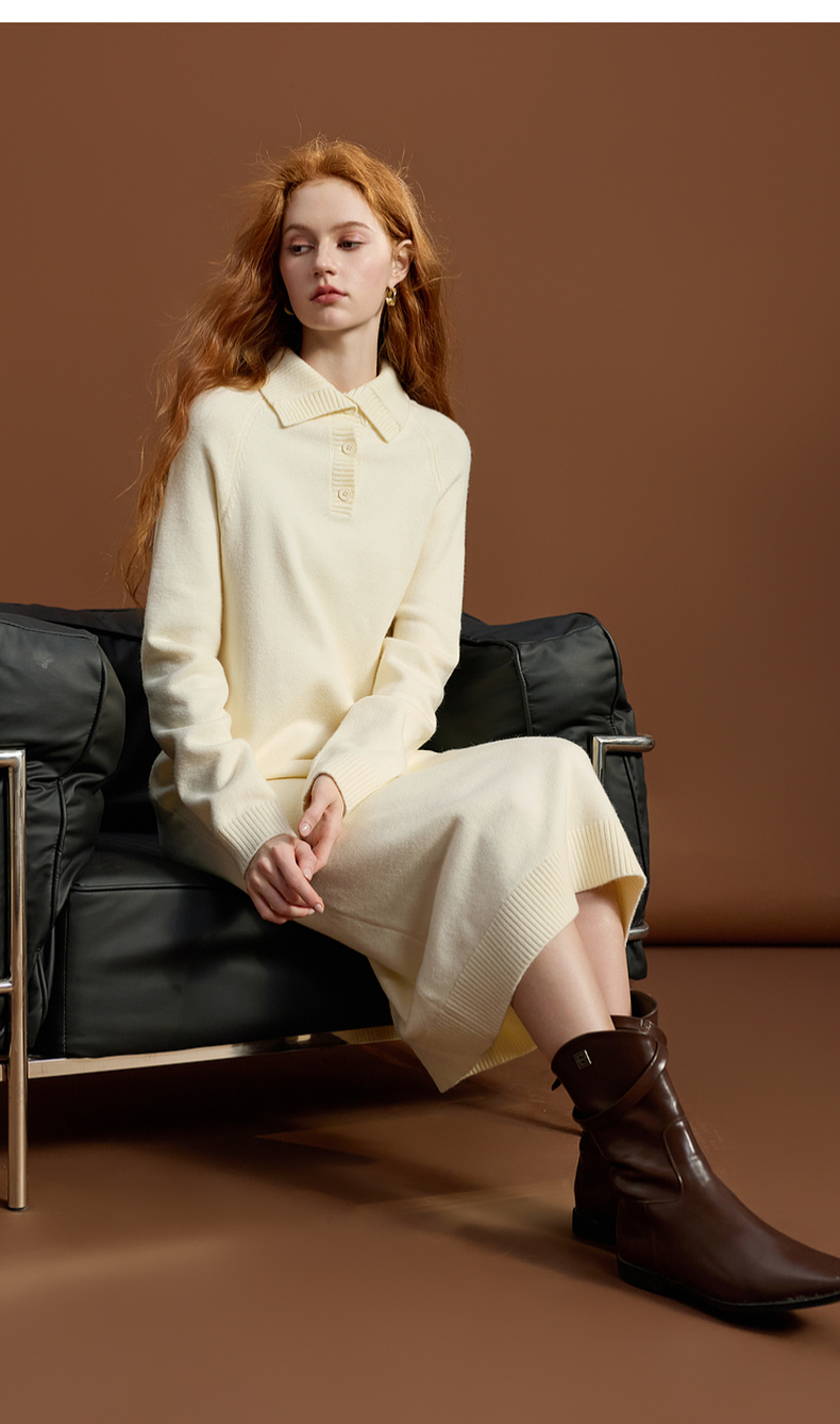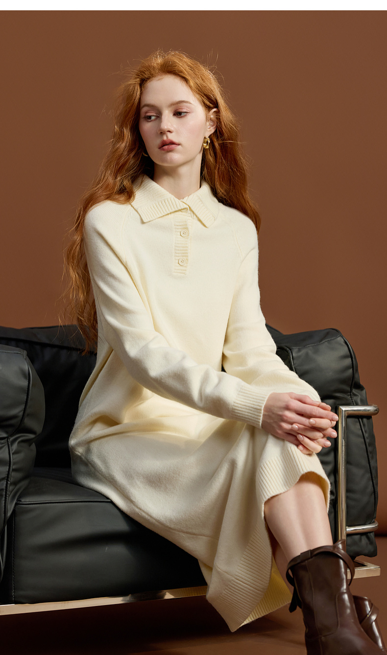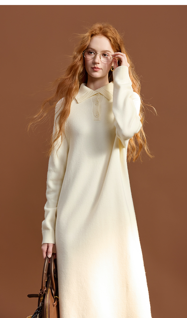 三彩2025冬季新款针织裙POLO领连衣裙宽松直筒裙中长M