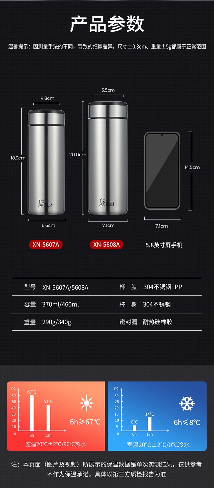希诺XN-5608A保温杯460ml本色