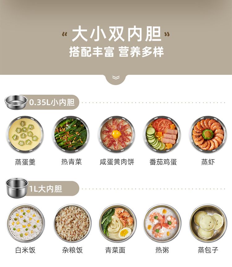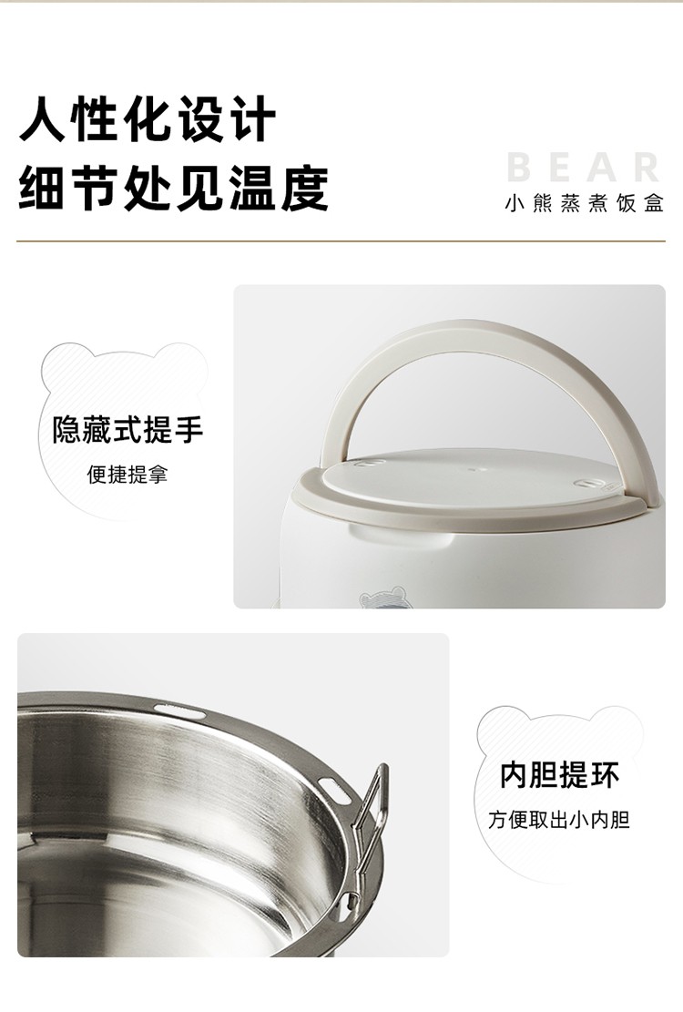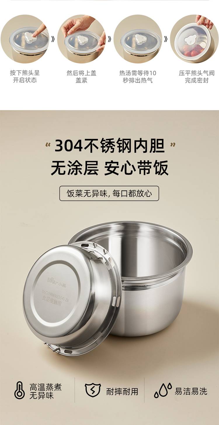 小熊(bear) 不锈钢内胆电热饭盒1.35L DFH-B14S3白色