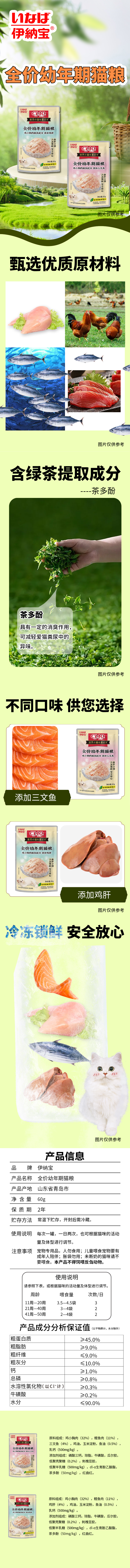 伊纳宝 妙好主食湿粮包 金味道猫零食 猫粮妙鲜包 猫湿粮罐头鲜封包 鸡小胸鲣鱼节 60g*48袋/箱