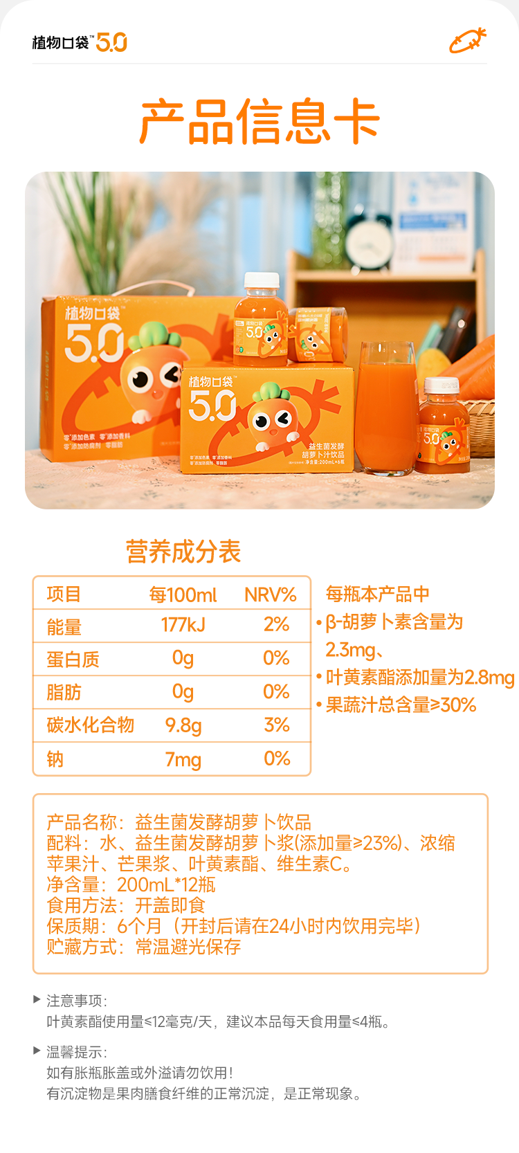 【配方干净】植物口袋 5.0益生菌发酵儿童护眼饮 200ml/瓶 全新无菌锁鲜工艺