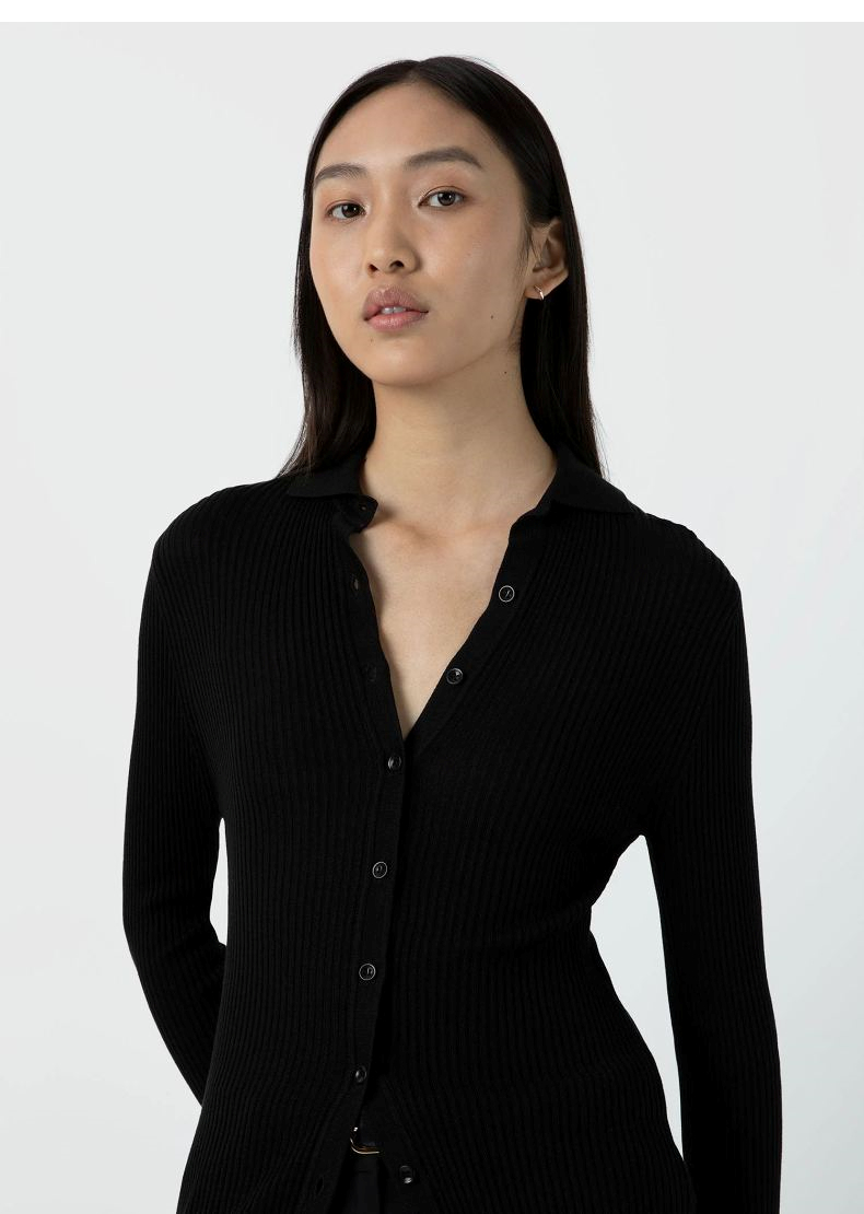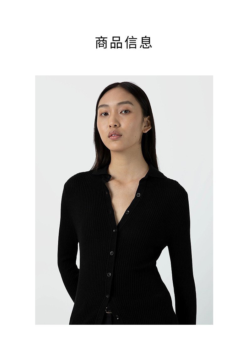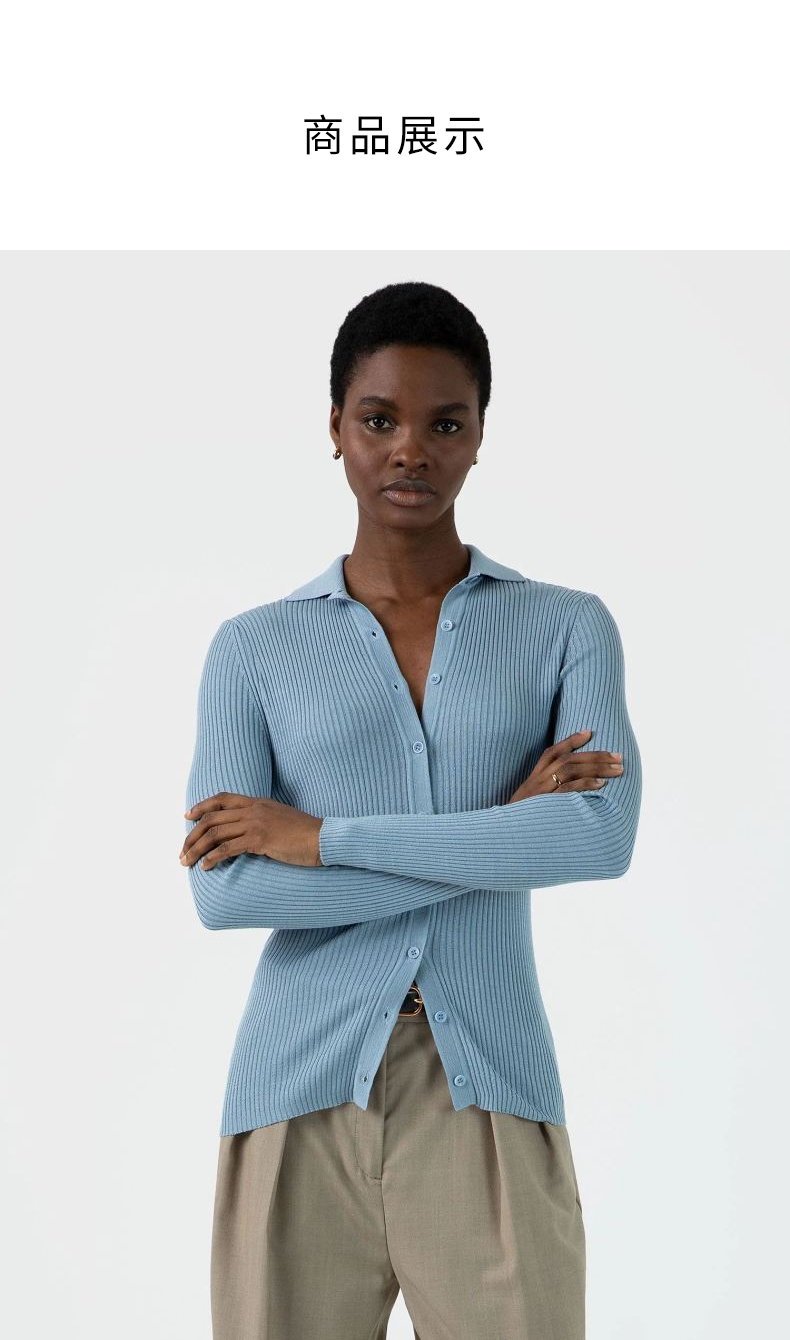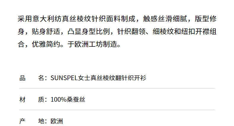 SUNSPEL女士桑蚕丝真丝棱纹翻领针织开衫