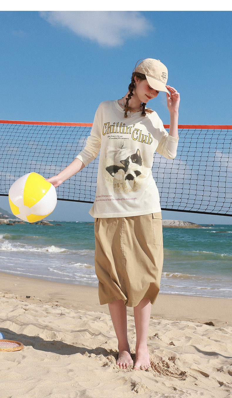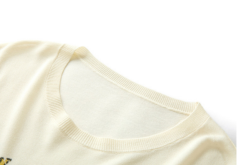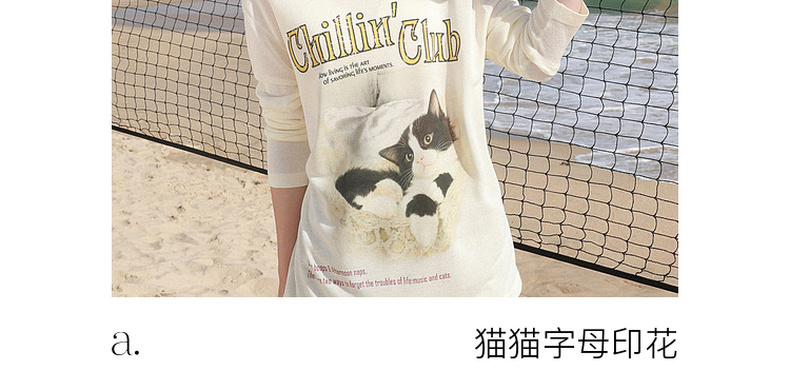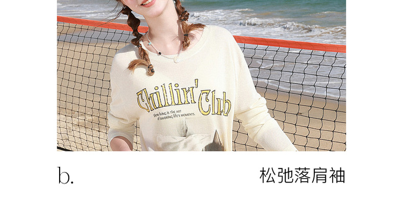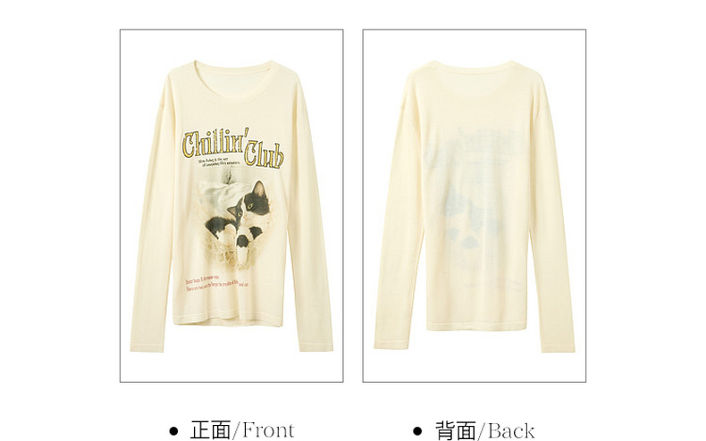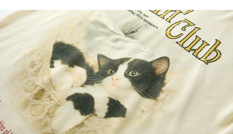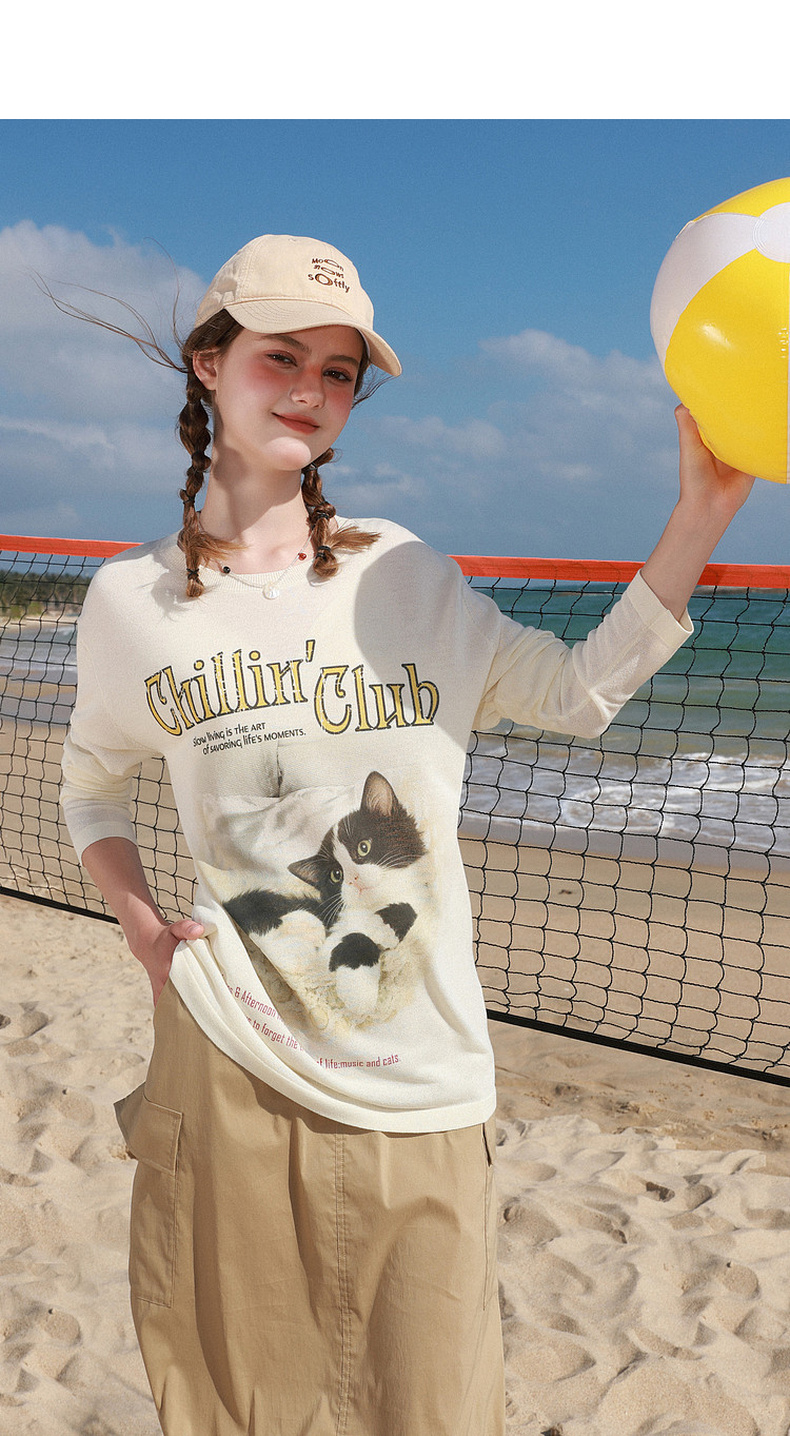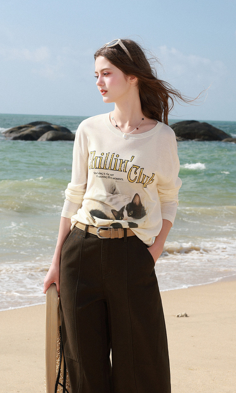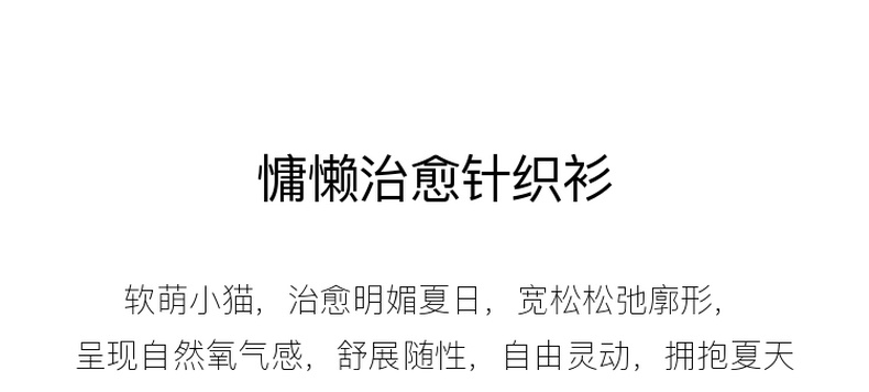 三彩独醒2026夏季新款猫猫字母印花针织衫宽松落肩袖毛衫套头F