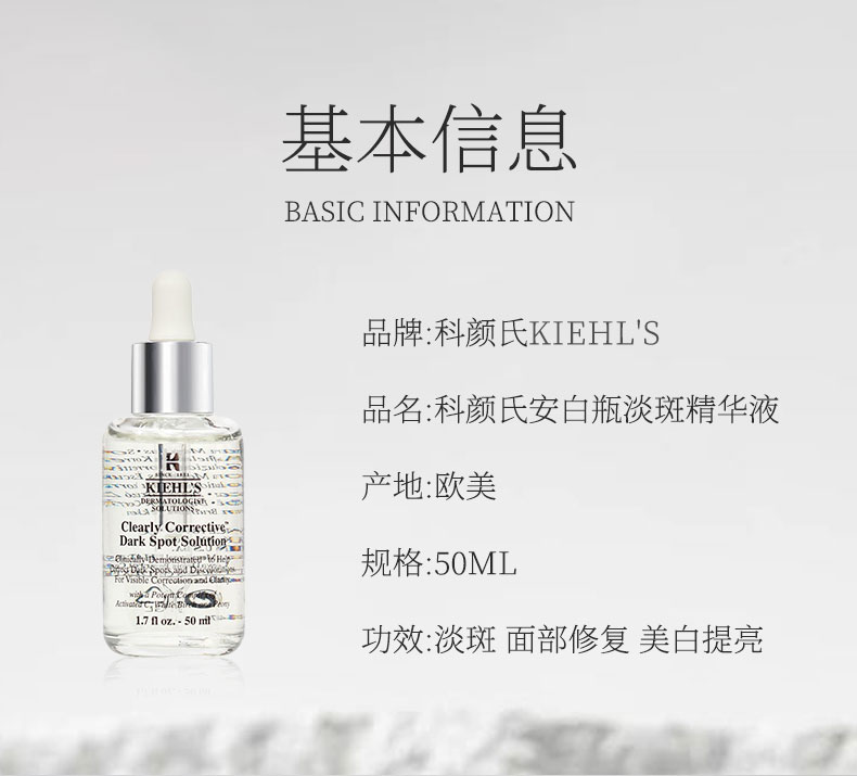【白皙透亮!焕然新生】Kiehl's科颜氏淡斑精华液 安白瓶面部修复 美白提亮肤色 50ML.01
