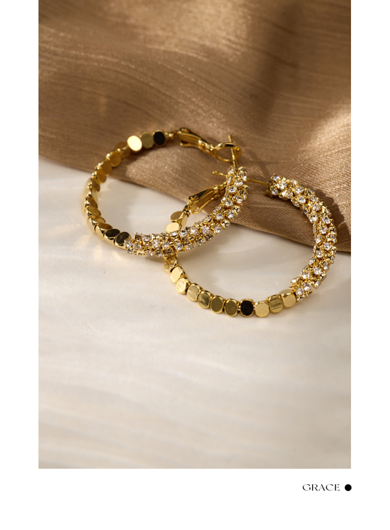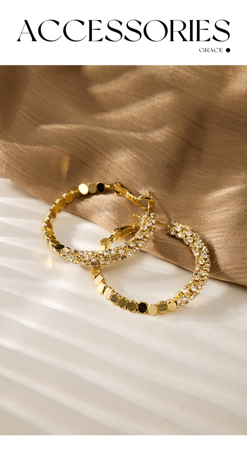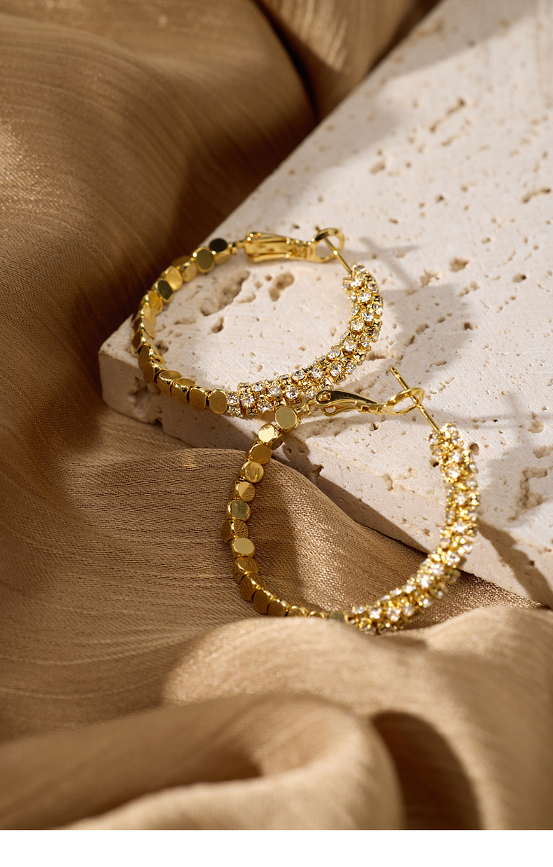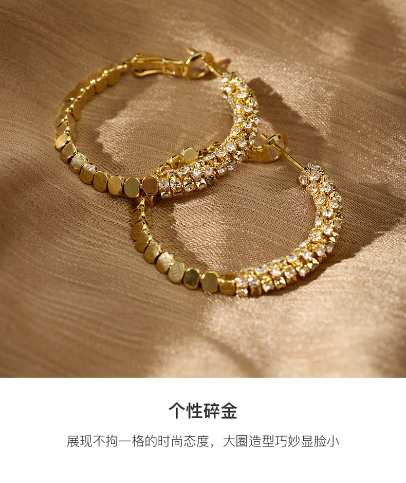 三彩2026新款碎金大圈耳环耳饰设计感水钻派对约会通勤华丽轻奢