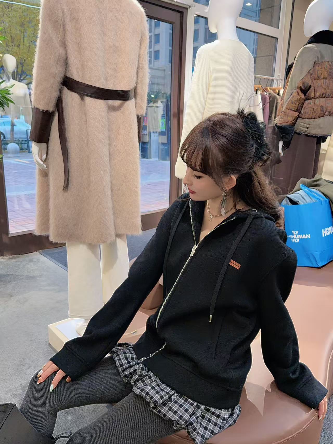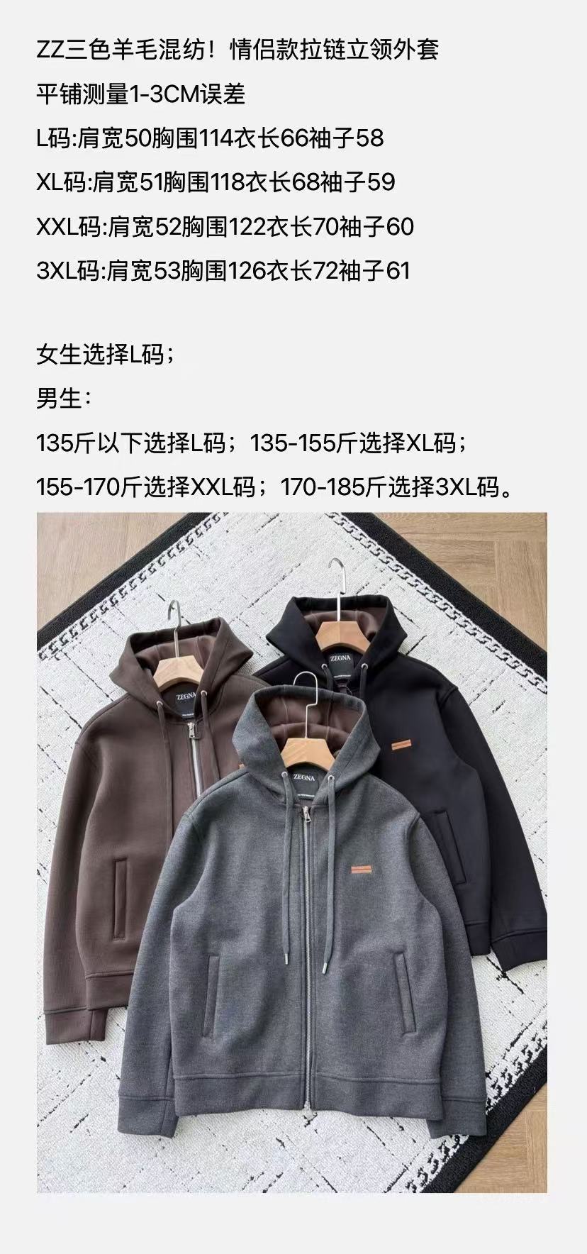 严选 | 杰尼亚帽衫羊毛开衫三色羊毛混纺!情侣款拉链立领外套